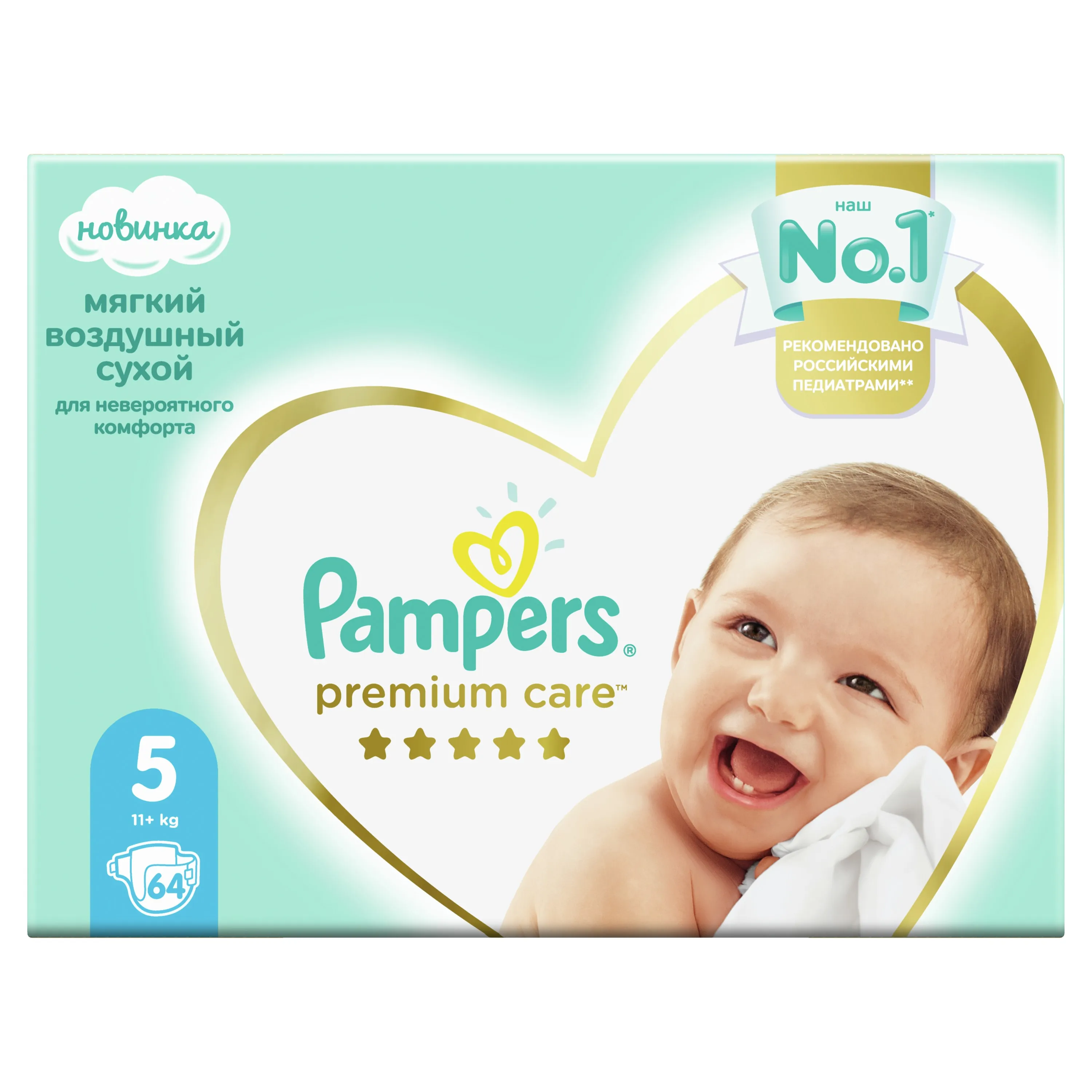 Подгузники Pampers Premium Care Размер 5, 11-16кг, 64 штуки
