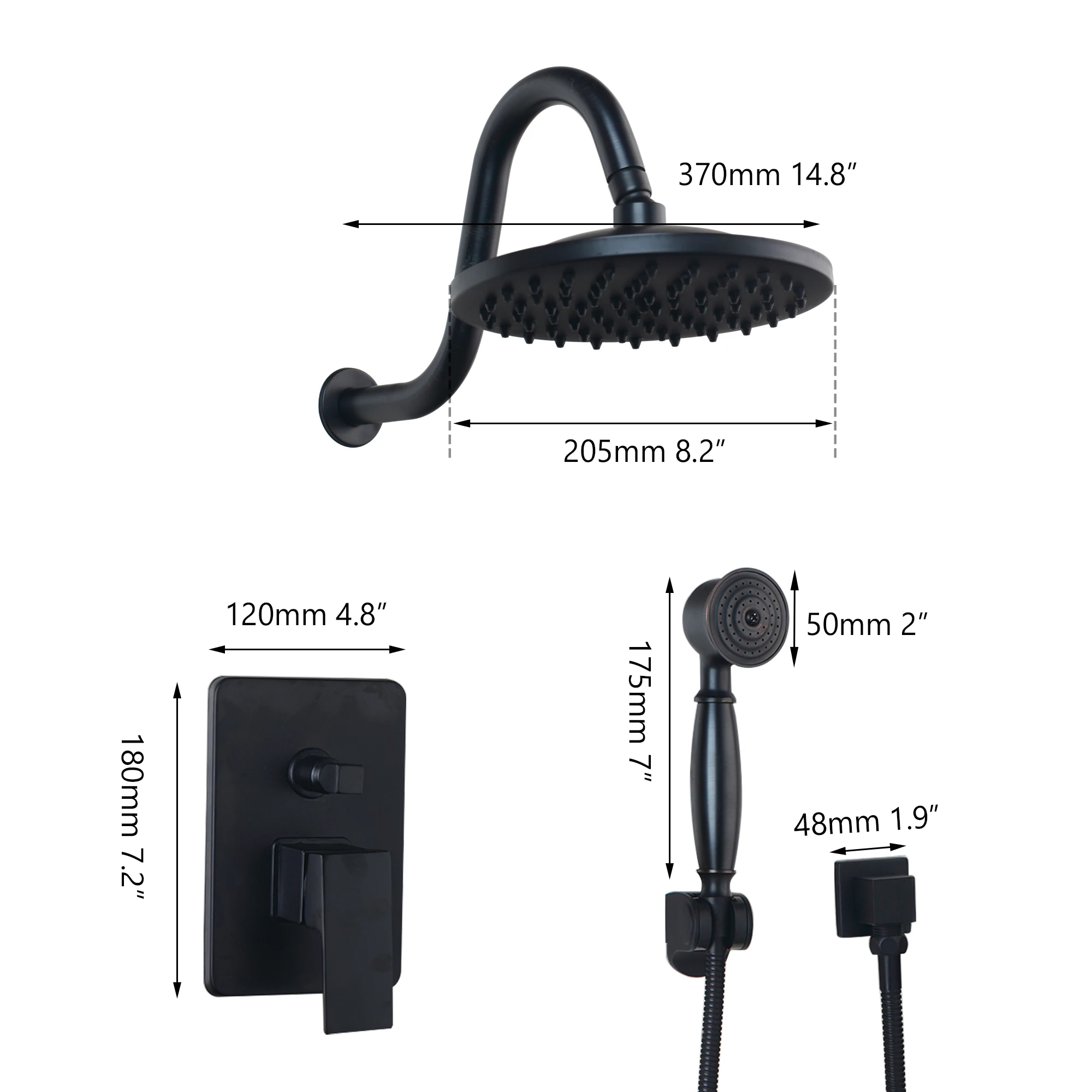 KEMAIDI дождевой смеситель для душа в ванную 8-дюймовая черная круглая головка, настенная, масляная, прорезиненная, бронзовая головка и комплекты ручной душа