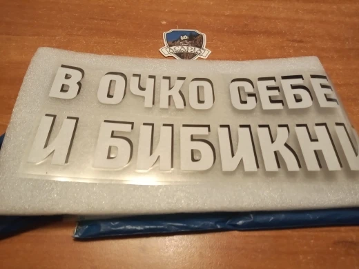 Наклеечка классная. Заказал 7.09 пришла 23.09 в Санкт-Петербург Состоит из двух слоев. После наклеивания снимается верхняя плёнка и остаются одни буквы. Держатся как на супер клее. Продавцу респект.