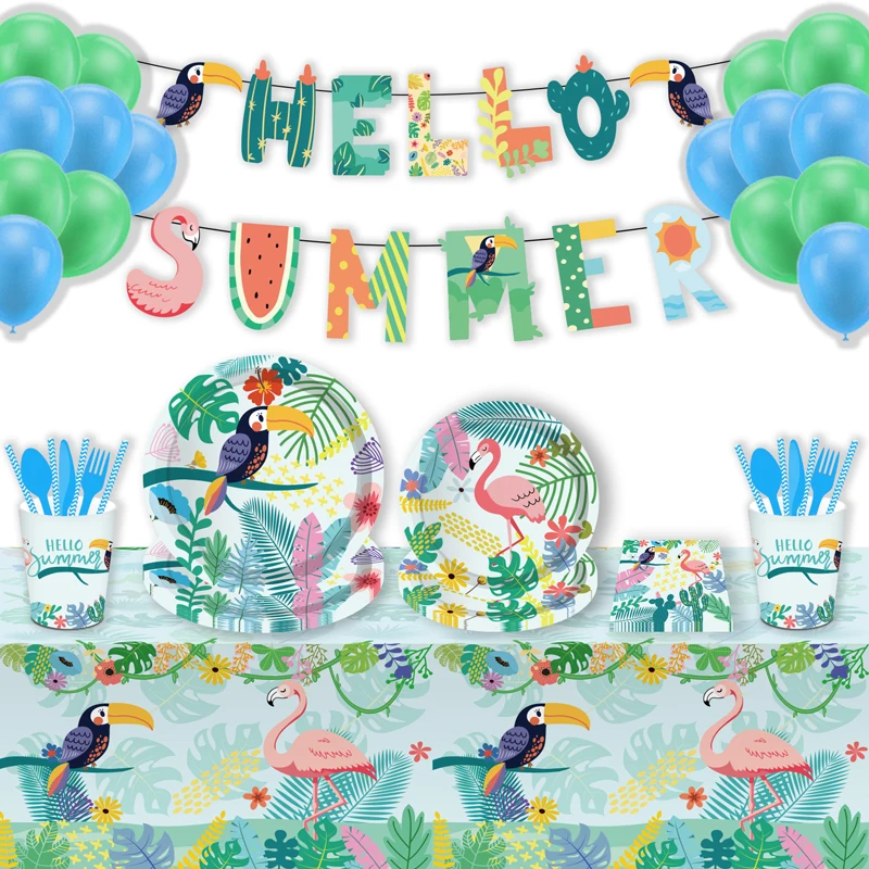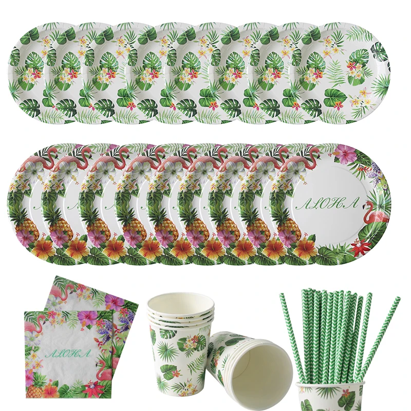 Салфетка Фламинго бумага украшения для вечеринки в гавайском стиле Пальмовые Листья Флаг Баннер Aloha посуда тропическая Вечеринка свадебное украшение