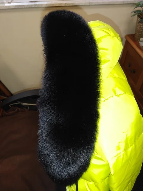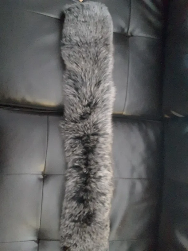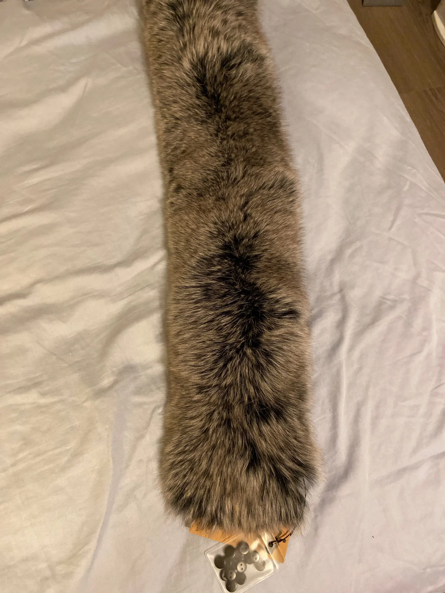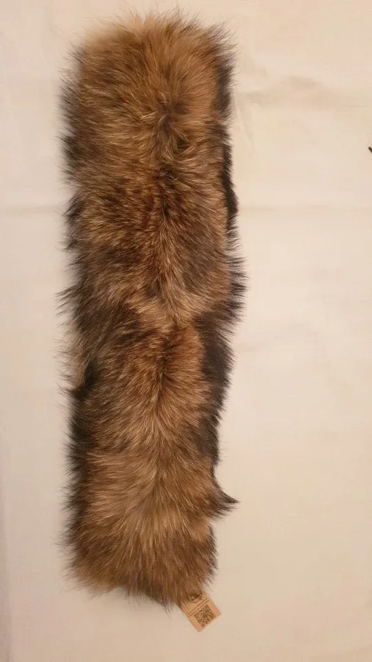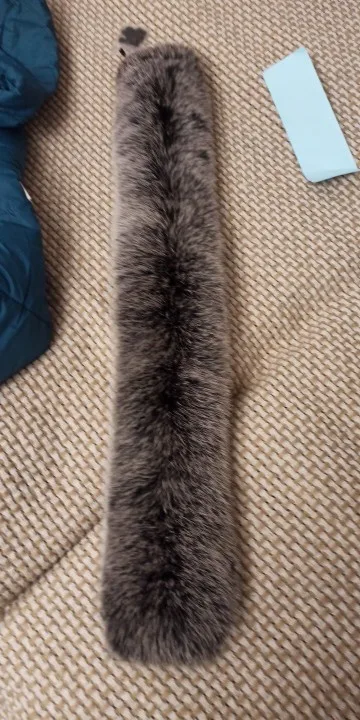 Отличный пушистый мех, очень плотный, хорошо набит. Кажется крашеный (имеет совсем легкий коричневый оттенок), но это его не портит. Классно смотрится на любом капюшоне. Выглядит очень богато. Имеет пришитые петельки с двух сторон. В комплекте был пакетик с пуговичками. Рекомендую продавца.