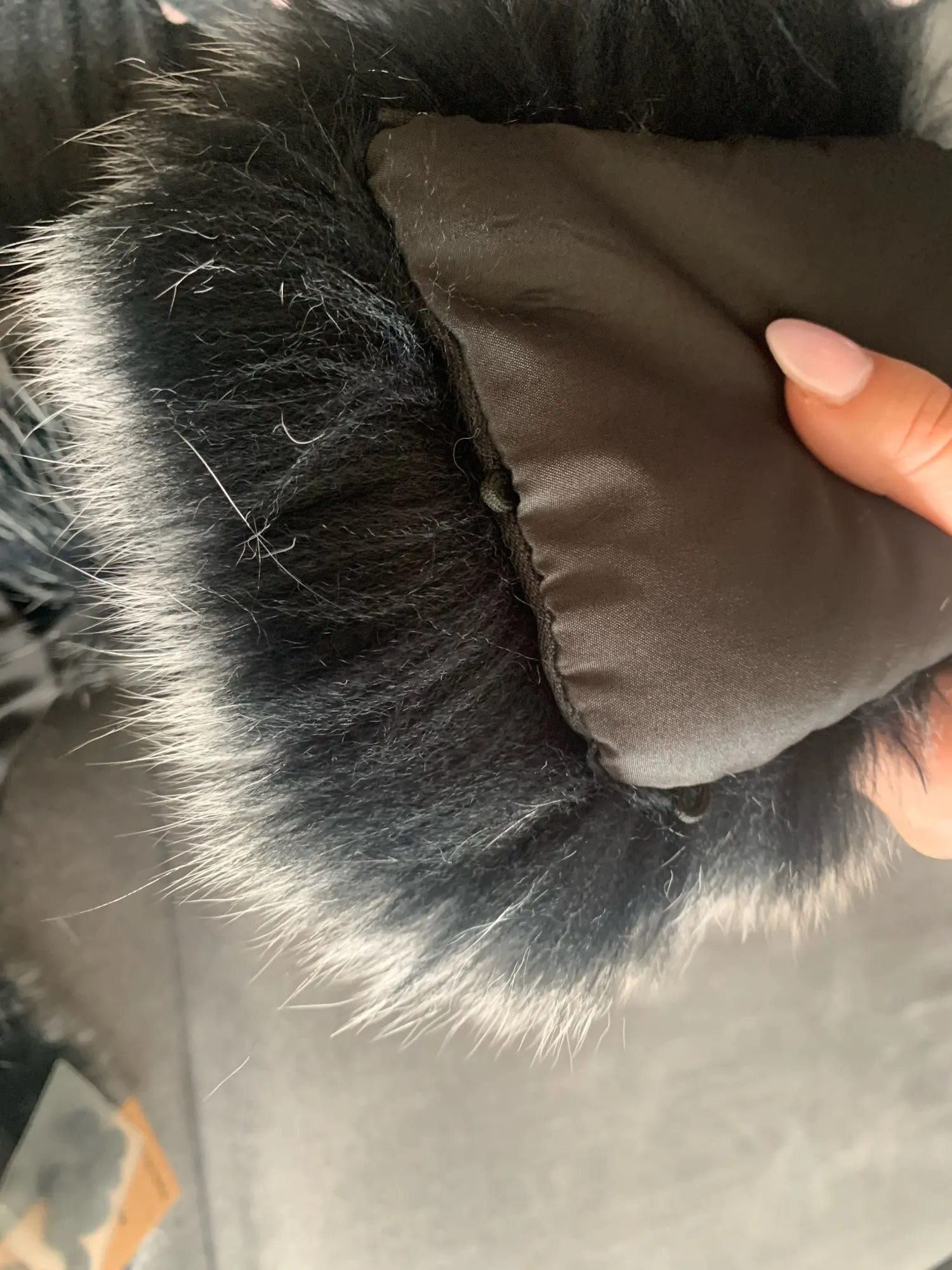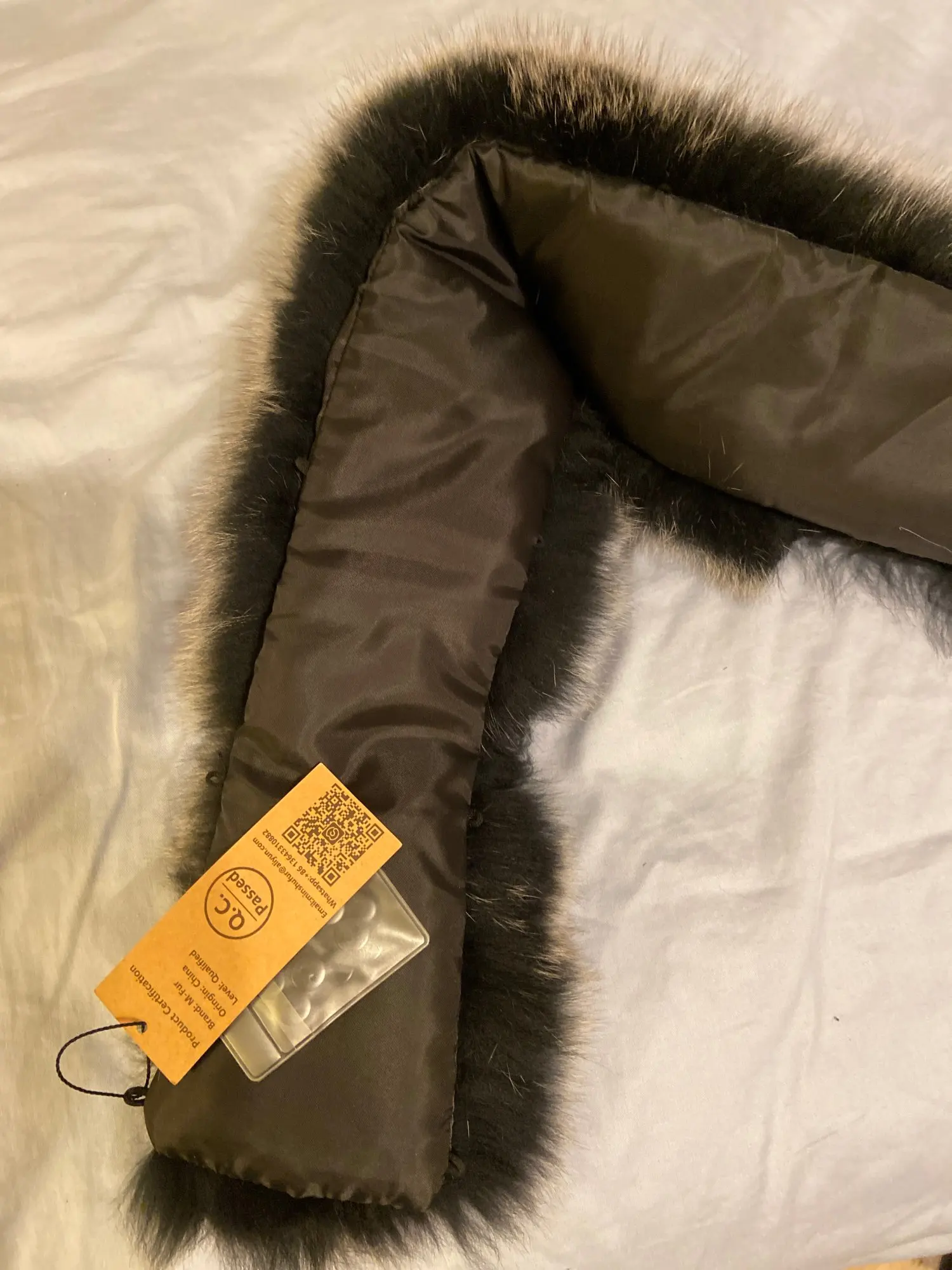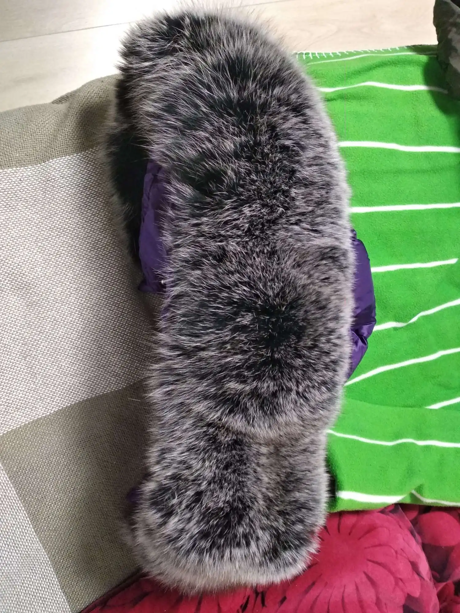 Отличный пушистый мех, очень плотный, хорошо набит. Кажется крашеный (имеет совсем легкий коричневый оттенок), но это его не портит. Классно смотрится на любом капюшоне. Выглядит очень богато. Имеет пришитые петельки с двух сторон. В комплекте был пакетик с пуговичками. Рекомендую продавца.
