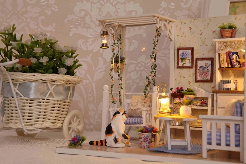 Миниатюрный кукольный домик мебель деревянная игрушка Сделай Сам кукольный домик миниатюрная комната милый домик кота для кукол подарок на день рождения игрушки для детей