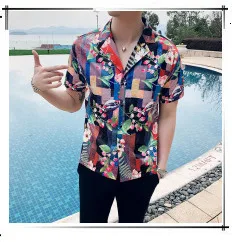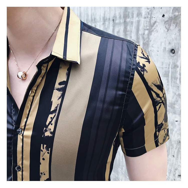 Рубашка мужская, летняя, с коротким рукавом, золотая, черная, 2018