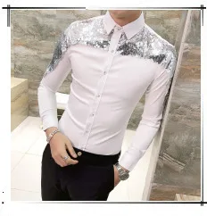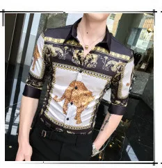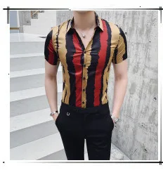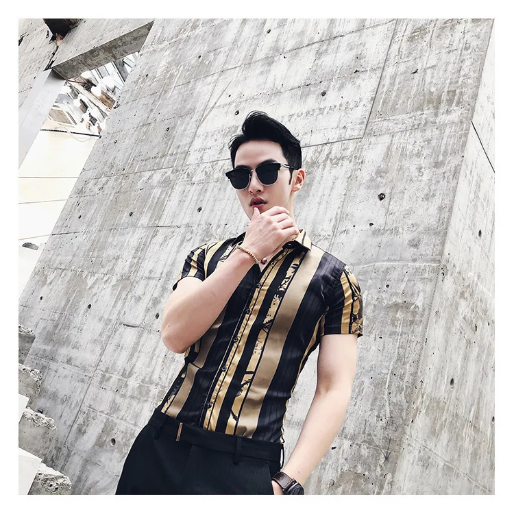 Мужская летняя рубашка с коротким рукавом, роскошная дизайнерская приталенная рубашка чёрного/золотистого цвета, 2018