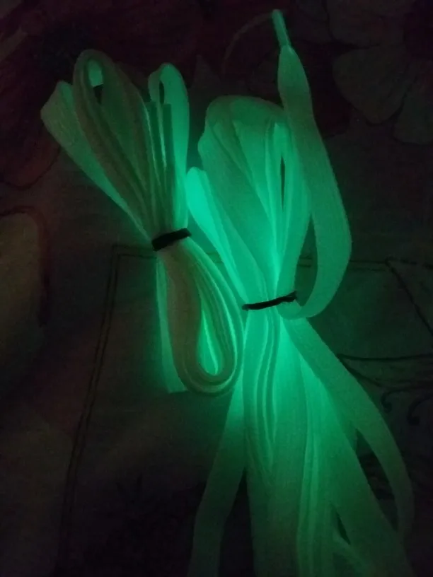 хорошие шнурки ,реально светятся,но для этого из нужно подержать на солнечном свете какое то время,и тогда они будут очень яркими