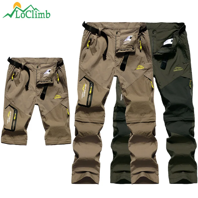 Мужские летние съемные походные брюки LoClimb, походные брюки, мужские Трекинговые Брюки, цвета хаки, горные спортивные шорты AM002