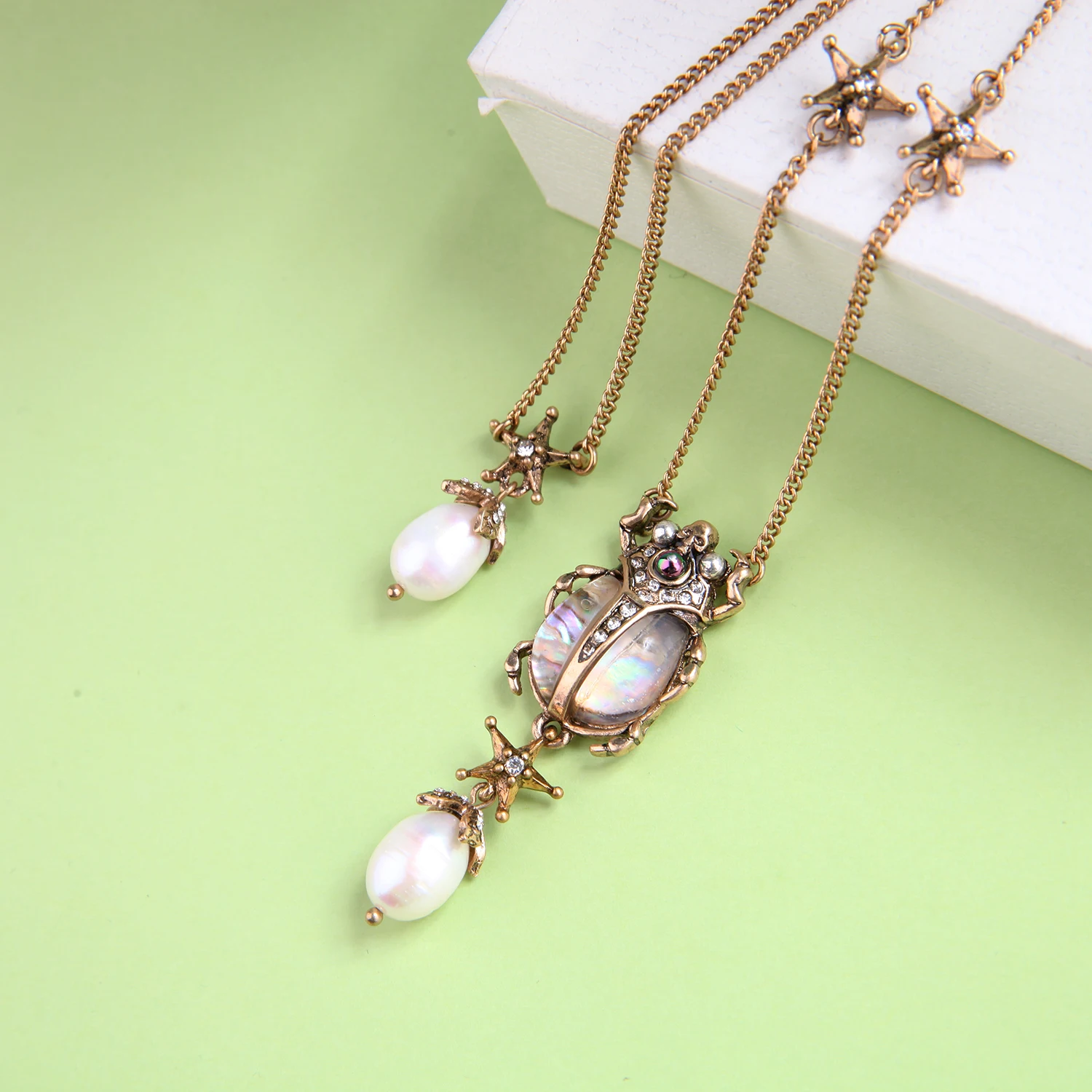keywordResin Crystal Insect Cultured Pearl Tassel Necklace For Women