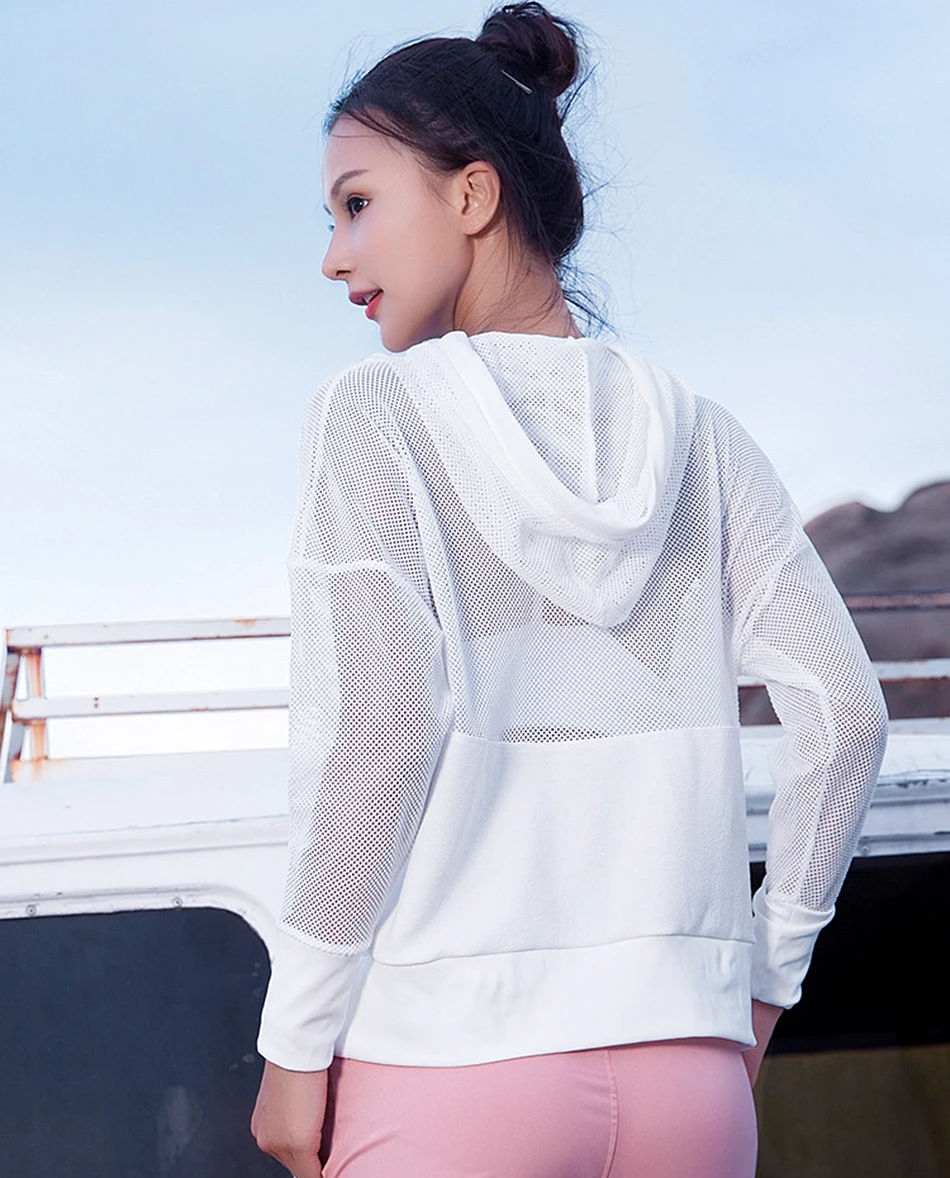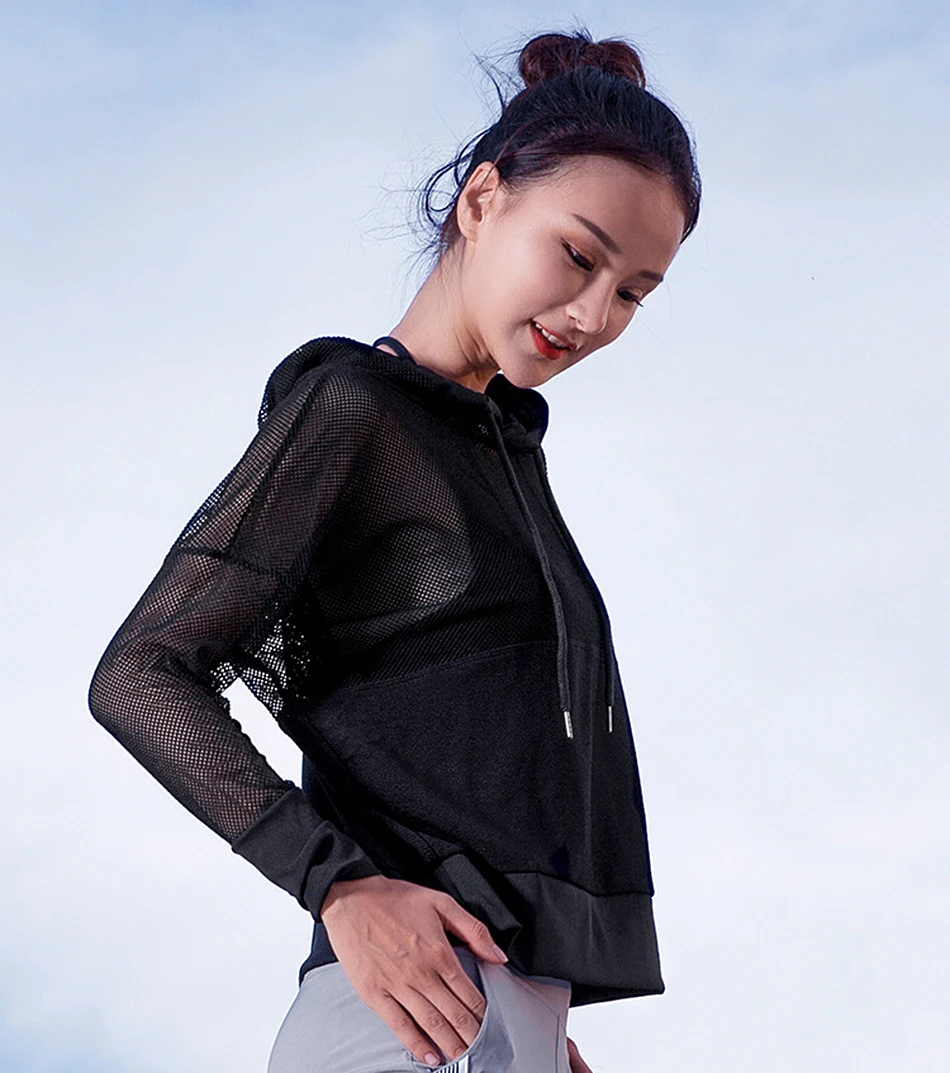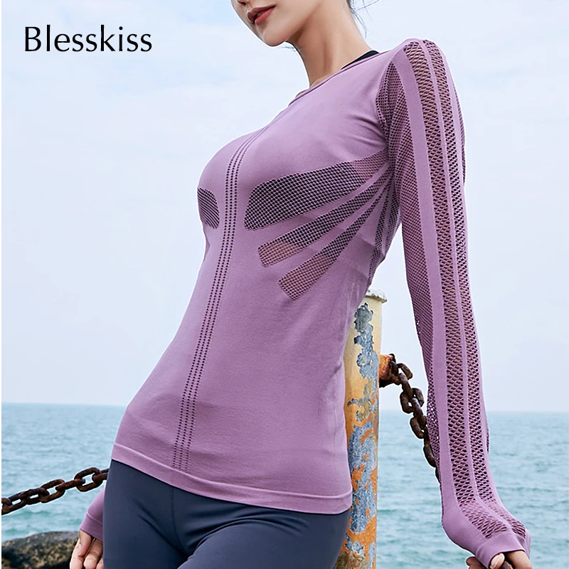 Сетчатая спортивная рубашка для женщин, топ для йоги, быстросохнущая спортивная куртка для фитнеса, спортзала, с длинным рукавом, спортивная одежда