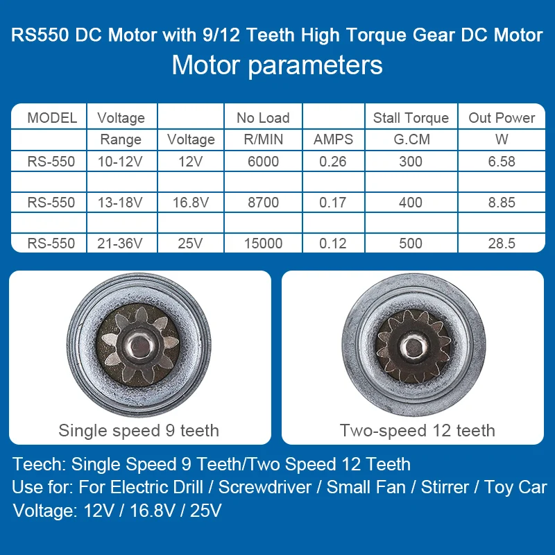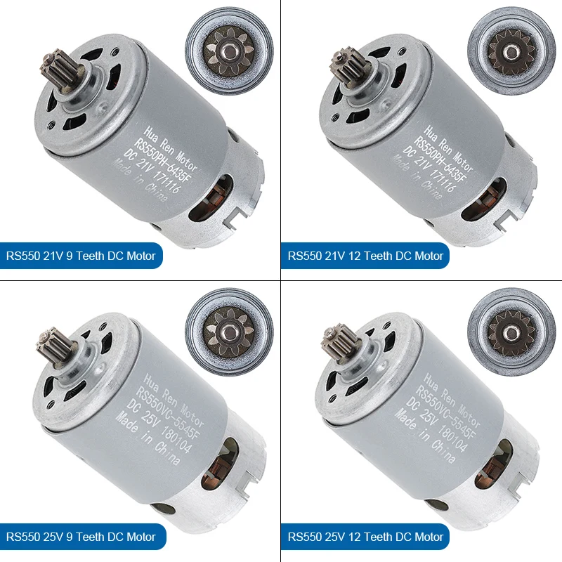 Электродвигатель RS550, 12 В, 16,8 в, 21 в, 25 в, 19500 обмин, с двухскоростным 12 зубцами и коробкой передач с высоким крутящим моментом для электродрелишуруповерта