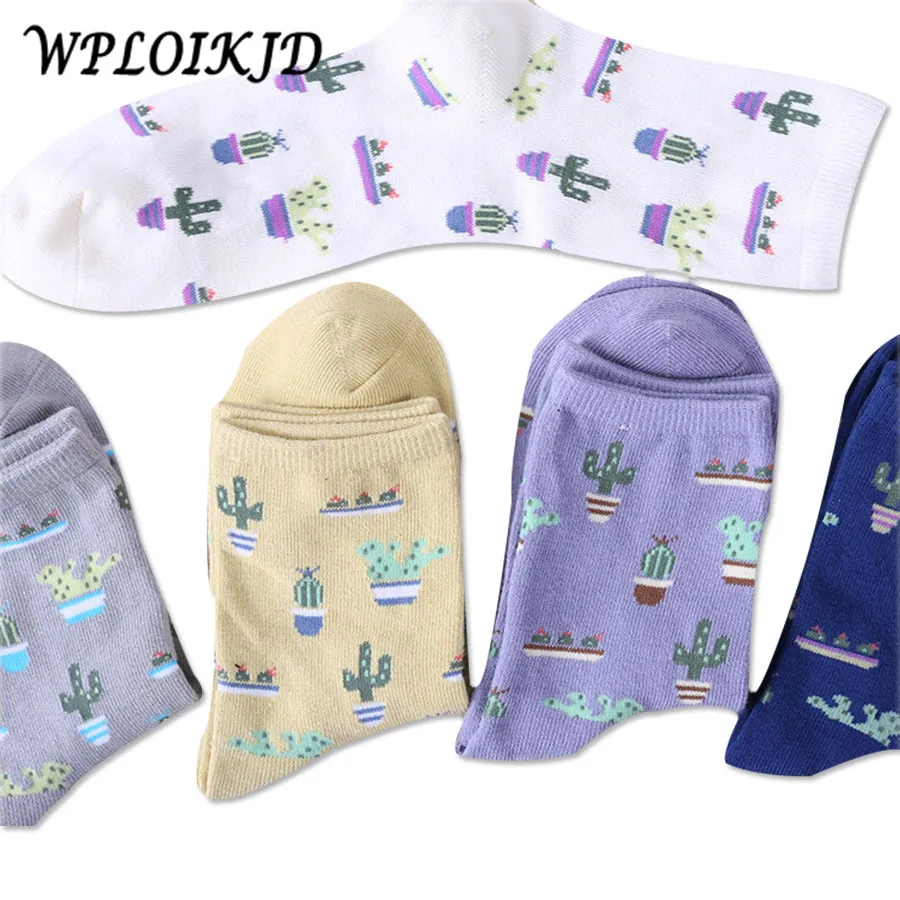 WPLOIKJD Harajuku новые женские милые удобные милые Носки с рисунком кактуса