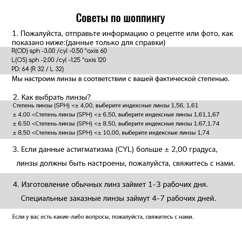 Страна: UA Lenses Color: Transparent Lens Index: 1.56 Доставка: Standard Shipping 23.12.2020