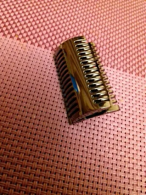 гладкого бритья не получилось, но и порезаться тоже. Этой головой можно брить тело и не бояться порезаться. Гребень забился волосами после 1 бритья. Поставил нижнюю плиту от реплики 89й - получилось чище даже по сравнению с yaqi knight. Насечки на верхней плите помогают не елозить станком поперек.