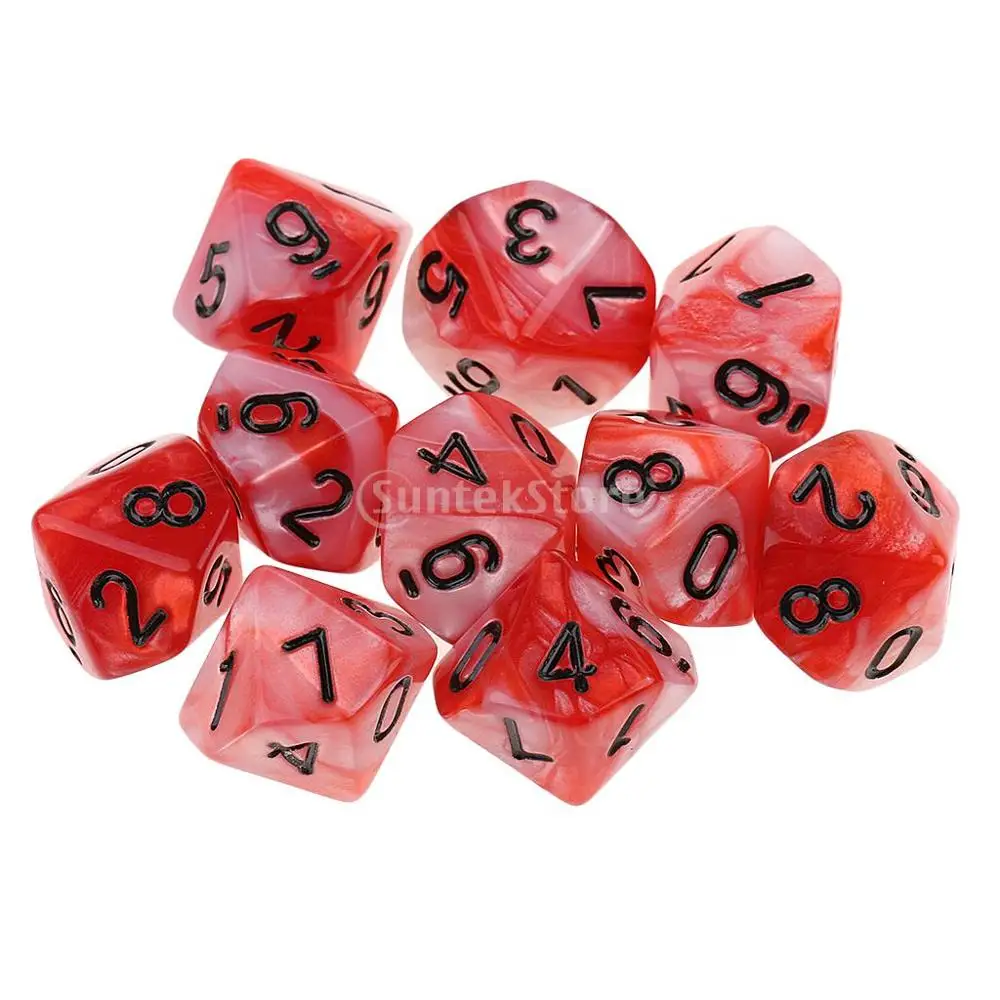 10 шт. 10-сторонние D10 цветные многогранные кубики, двухцветные кубики для D D RPG MTG, настольные игры, аксессуары для настольных игр