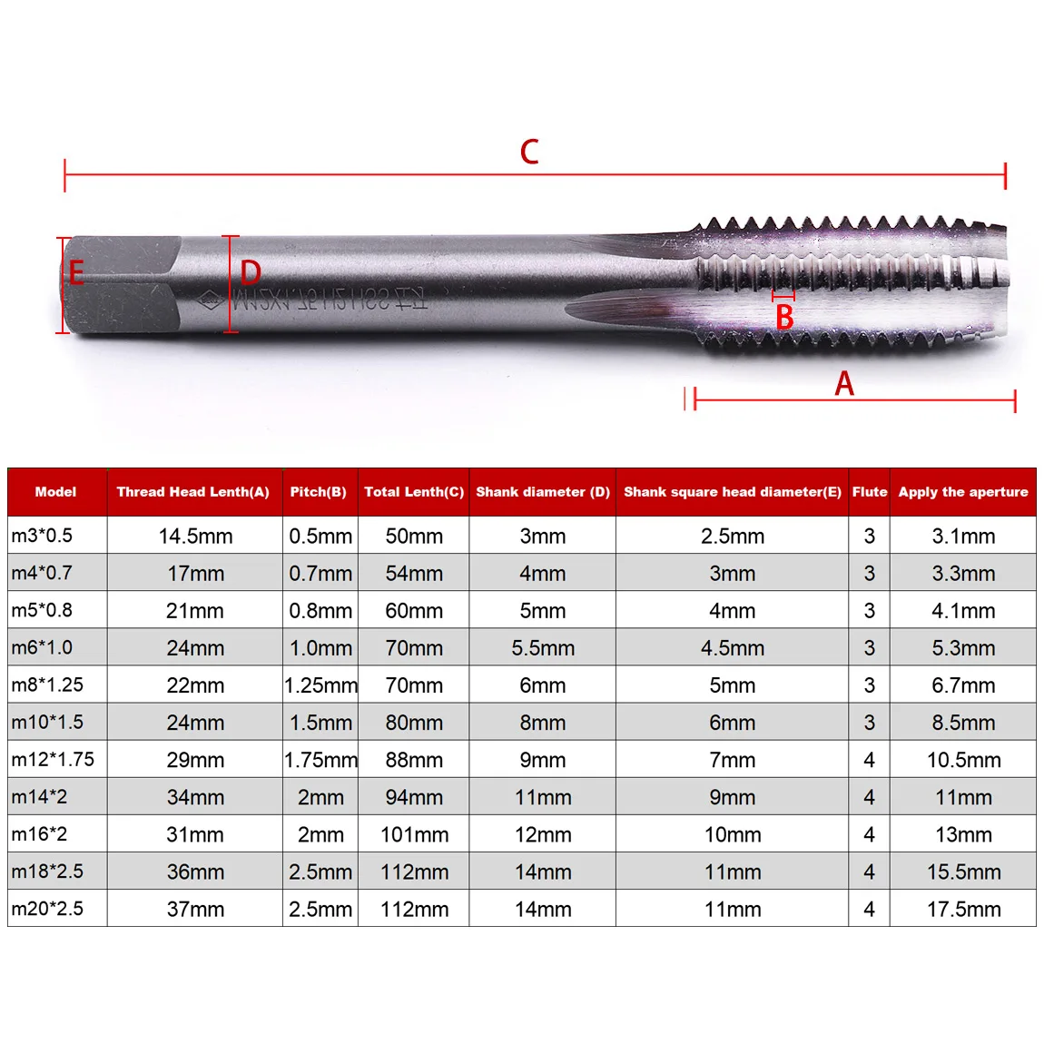 Левосторонний метрический кран с резьбой, 1 шт., винт из быстрорежущей стали насадки для сверления M3 M4 M5 M6 M8 M10 M12 M14 M16 M18 M20, станок с прямым хвостовиком