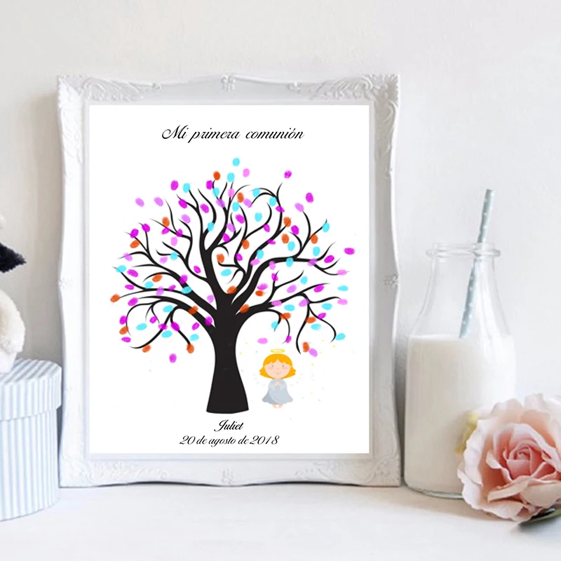 HAOCHU индивидуальное имя Дата отпечаток пальца холст живопись Гостевая книга мальчик девушка крещение моя первая святая Причастие Декор