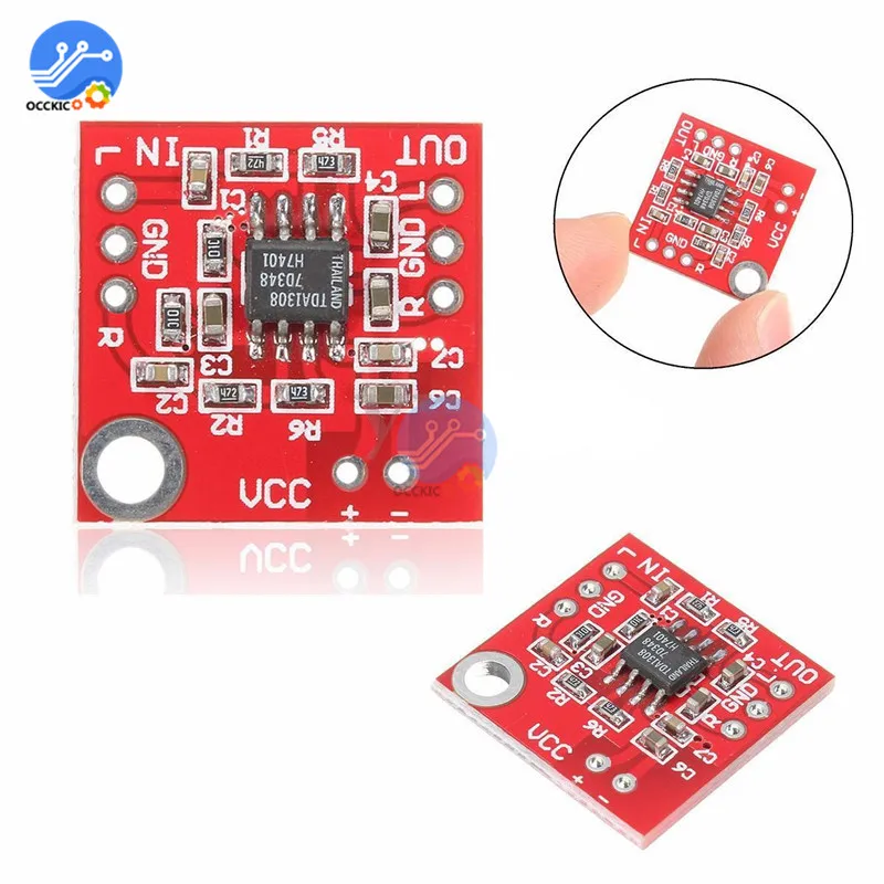Как в рекламе. Он прибыл в Испанию через месяц, упакован в антистатический конверт рядом с партией различных продуктов, обернутых в мягкий пакет. Этот маленький усилитель TDA1308 очень прост в подключении. Вам нужно только приварить вход R-Gnd-L к входу и выходу и мощность его с 1S 3,7 батареи v или 3-5v питания. Усиление хорошее и достаточно, но в этой уменьшенной модели ваши резисторы не могут быть легко напечатаны, чтобы изменить коэффициент усиления. Я собираю его для увеличения мощности в креплениях bluetooth-гарнитуры.