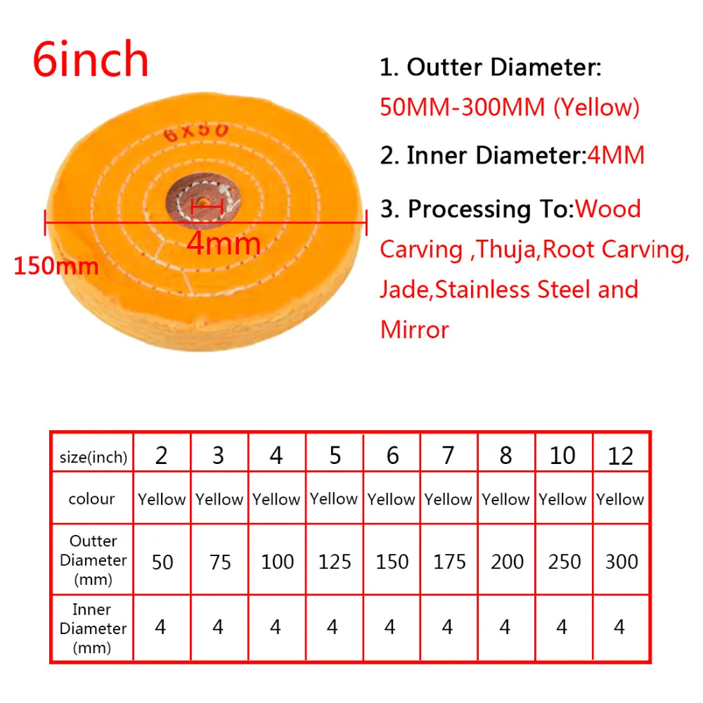 4 мм внутренняя Диаметр В переменного тока, 50-300 мм из хлопкового волокна для ткань полировального круга цвета: золотистый, серебристый с зеркалом для ювелирных изделий оборудования полировального круга инструментом желтого цвета