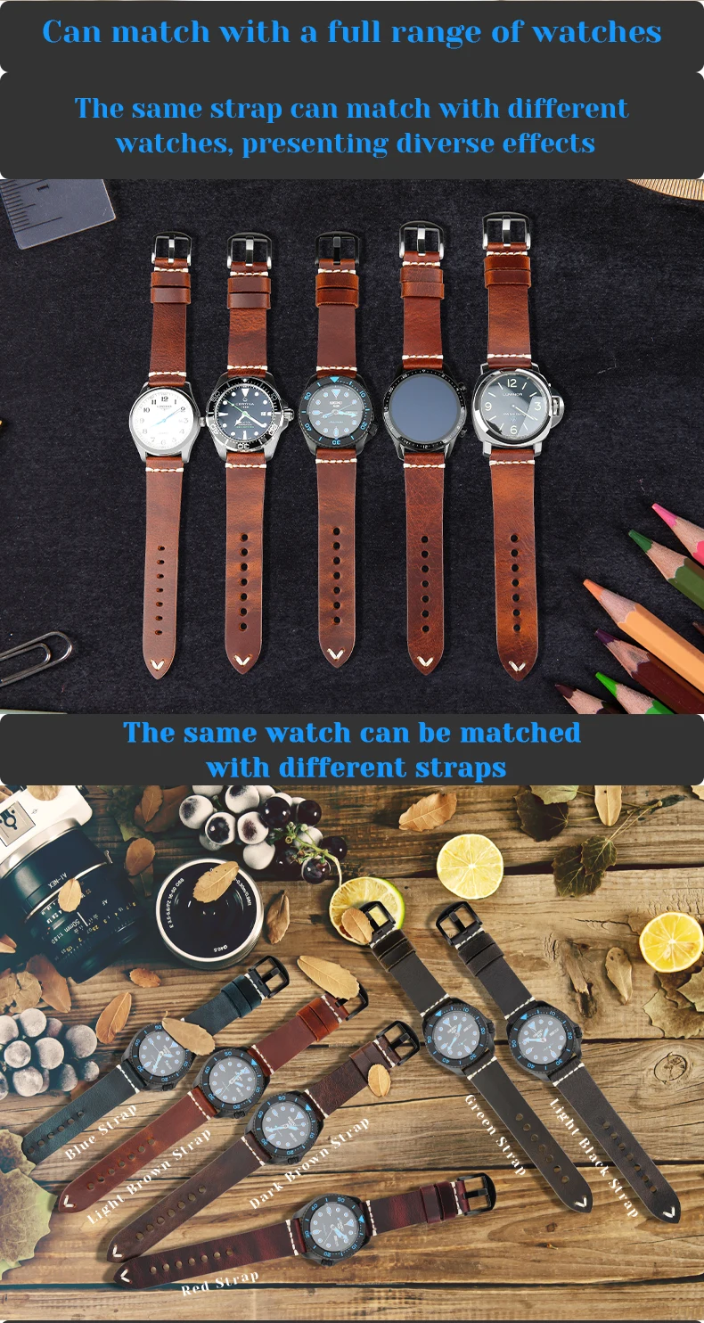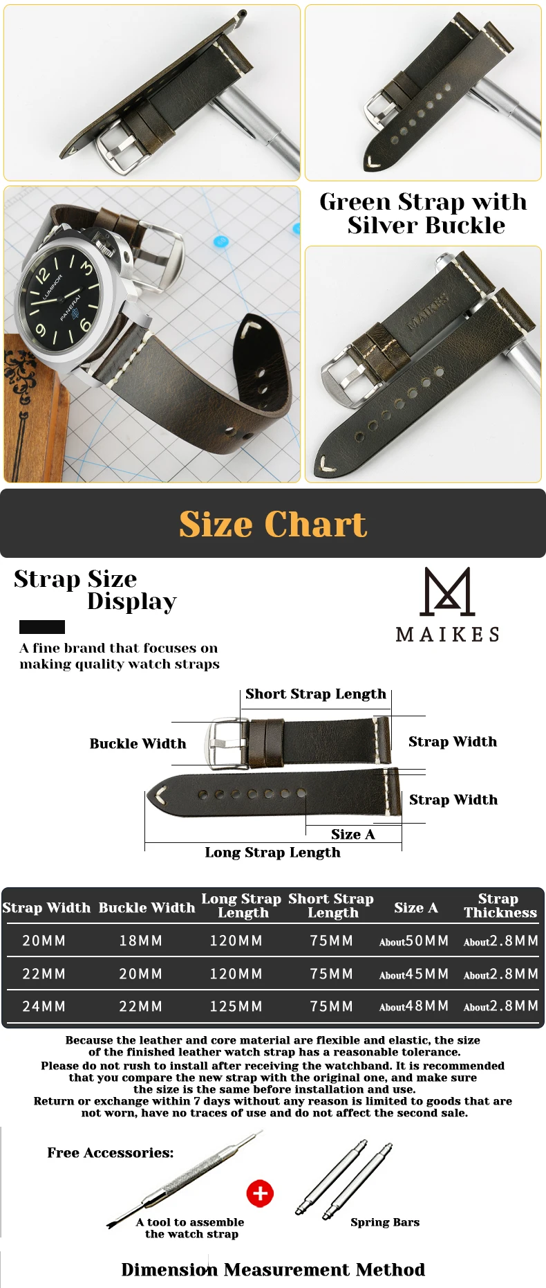 Ремешок MAIKES из натуральной воловьей кожи для наручных часов, винтажный Красный браслет для часов Panerai, 20 мм 22 мм 24 мм
