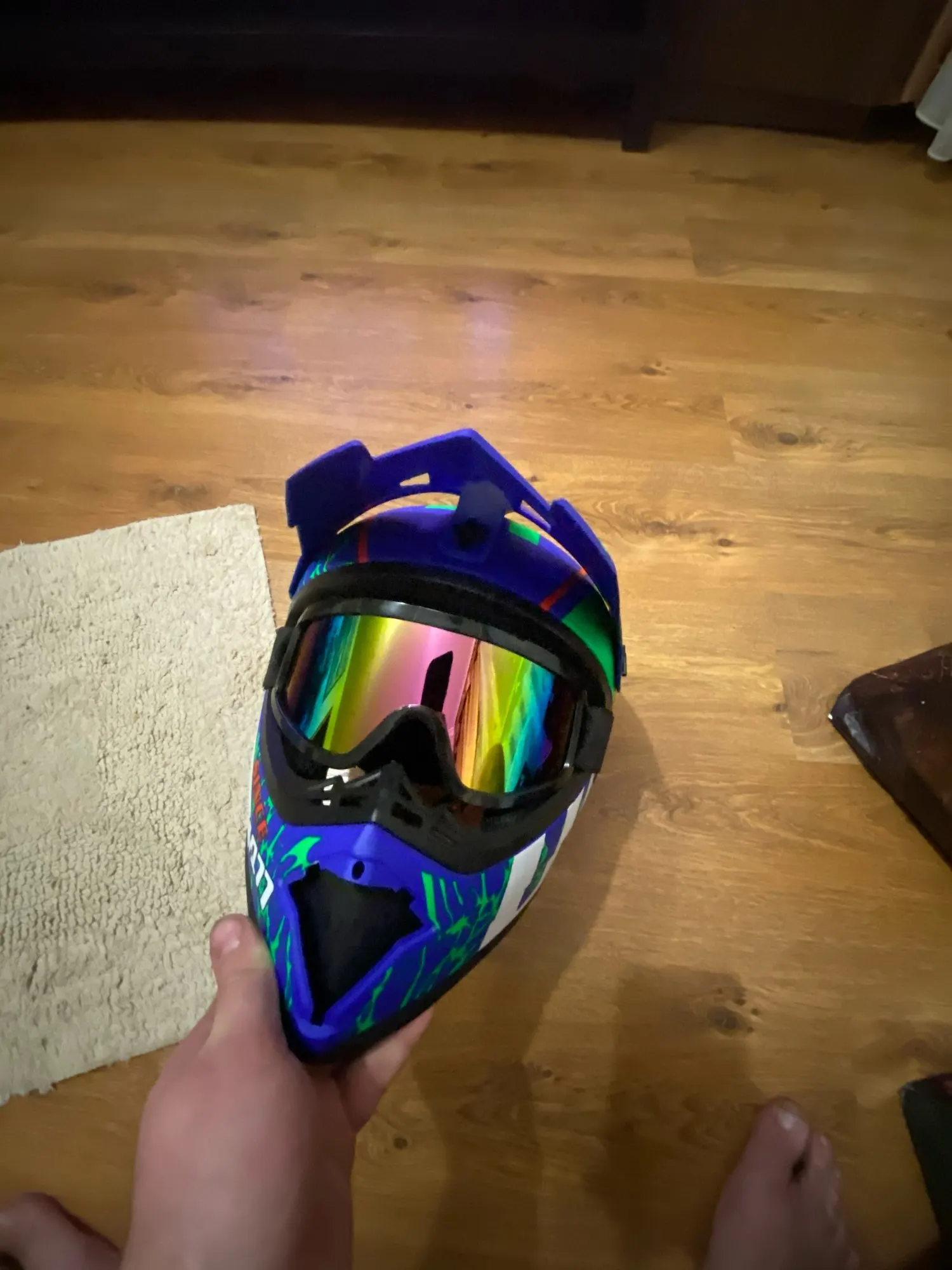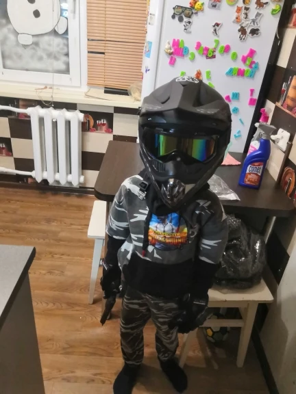 шлем пришел быстро, но размер S для ребенка 4 х лет огромный... на вырост вообще будет. маска и перчатки зачёт. шлем супер за свои деньги. продавца рекомендую