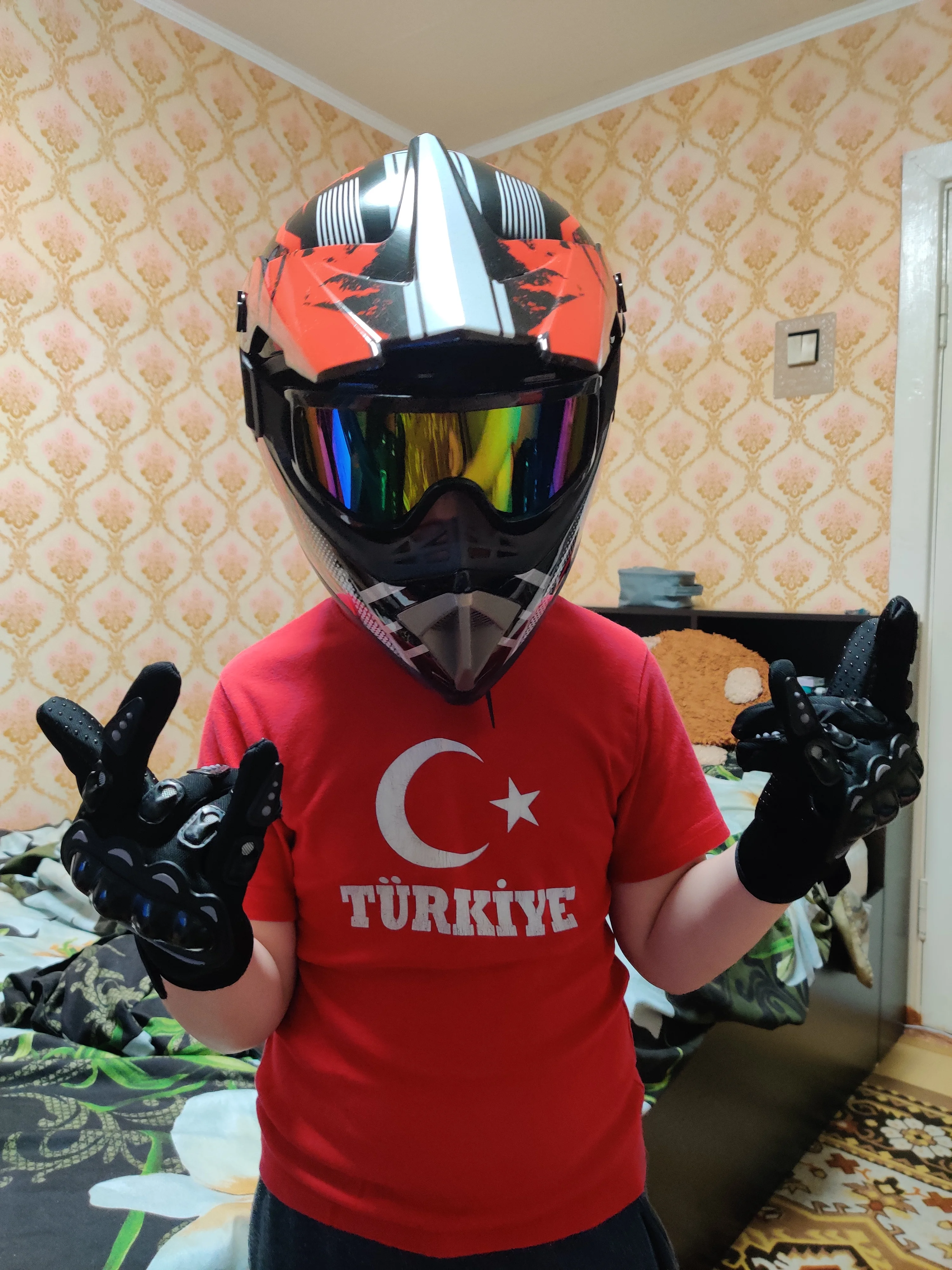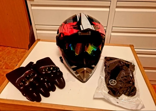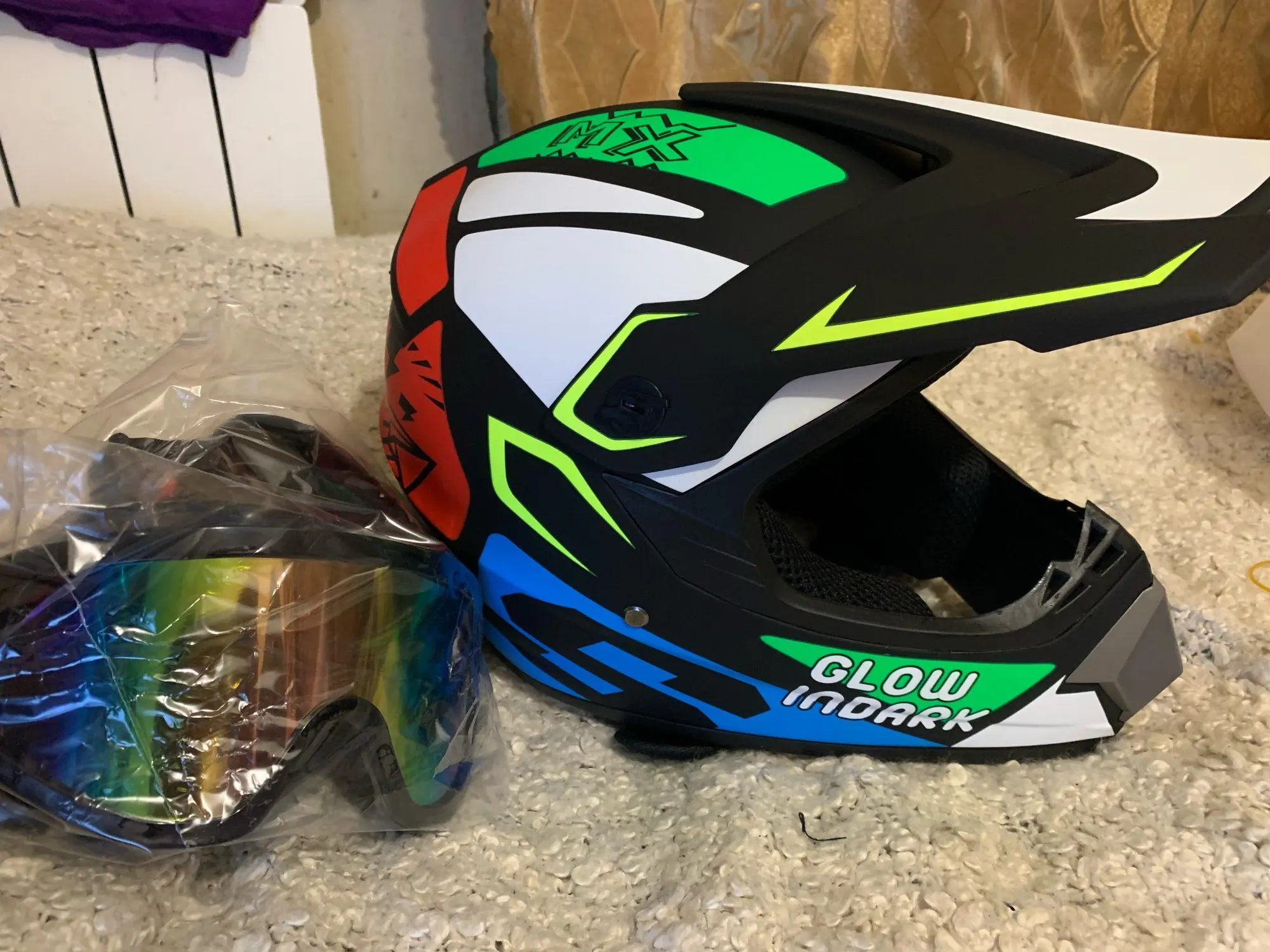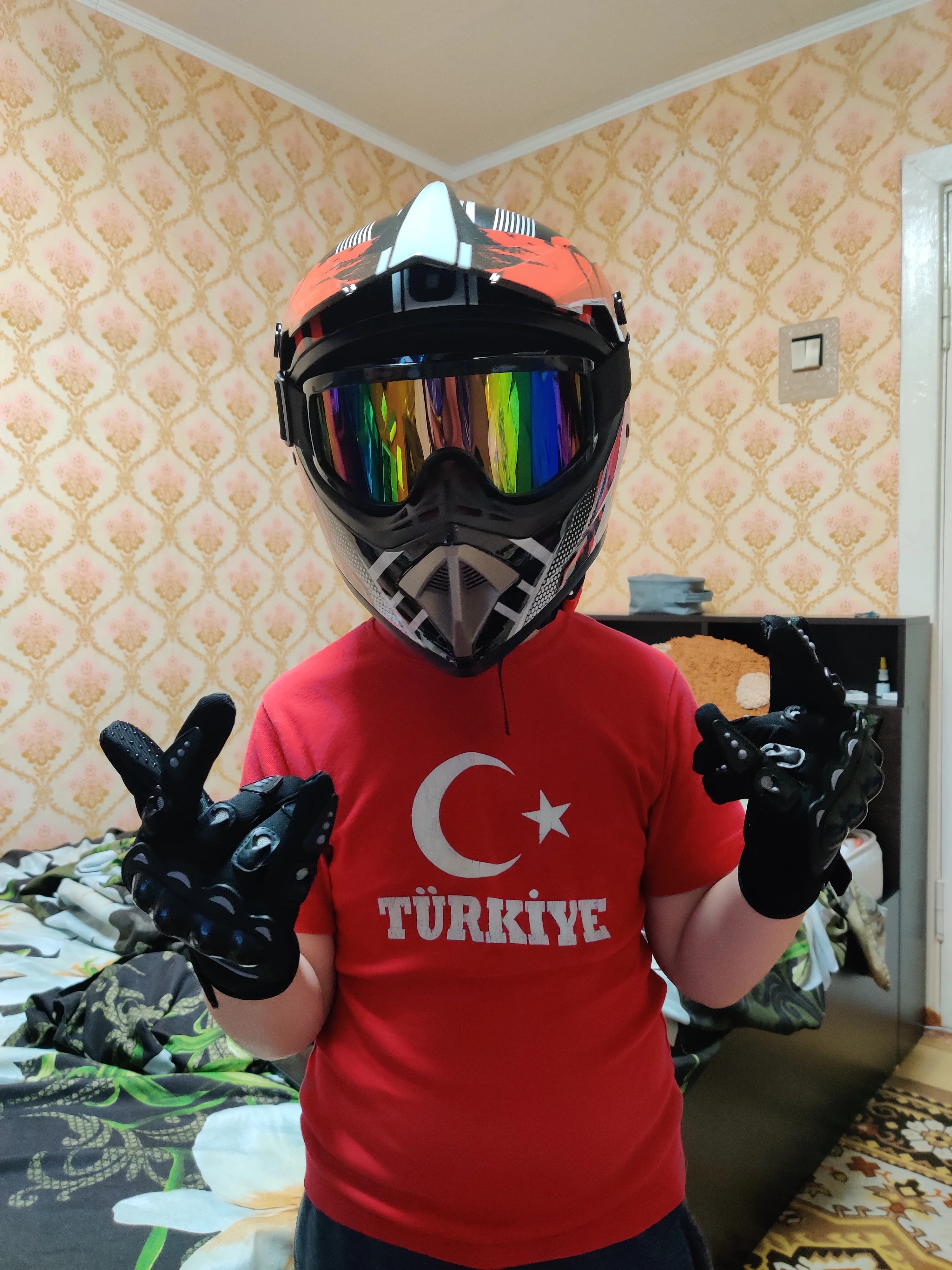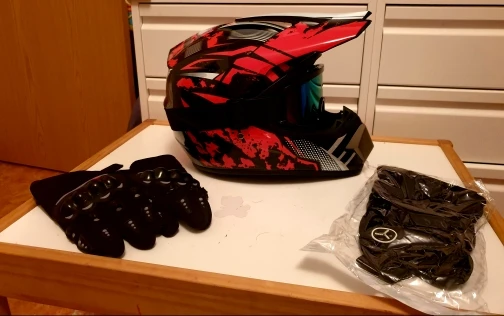 Шлем хороший, подошёл по размеру. Очки понравились, но перчатки..... Сделаны ужасно нитки торчат, с дыркой, застежка и натирает запястье