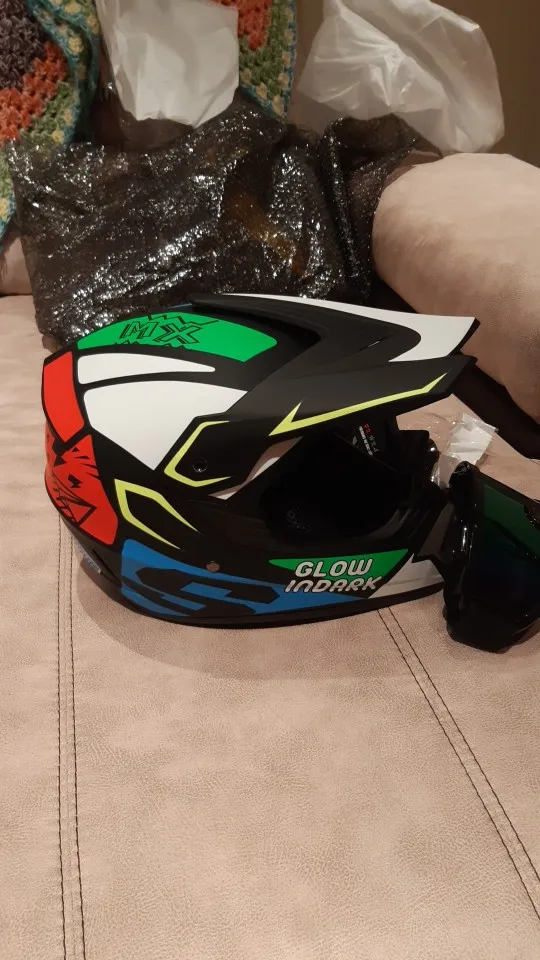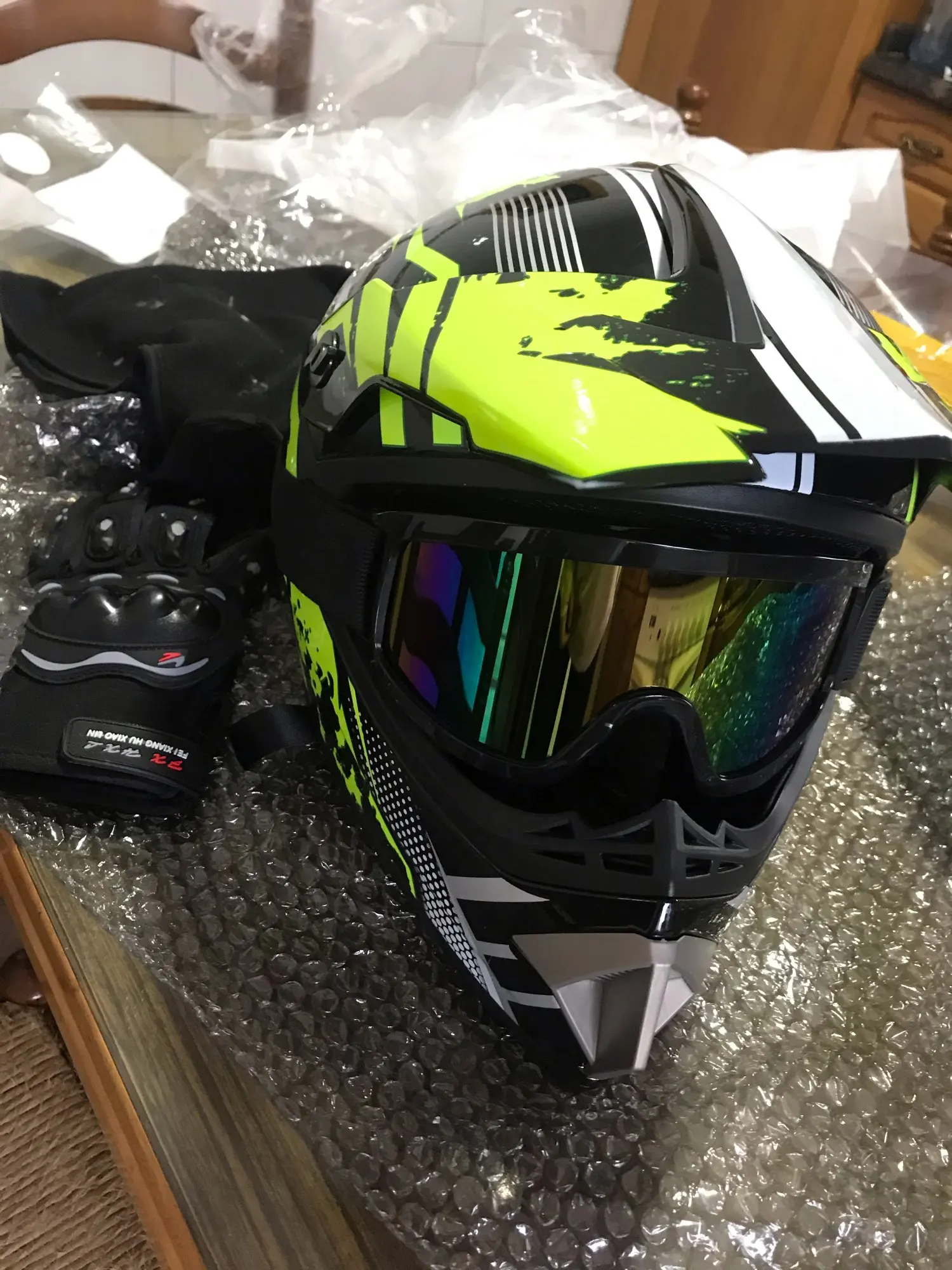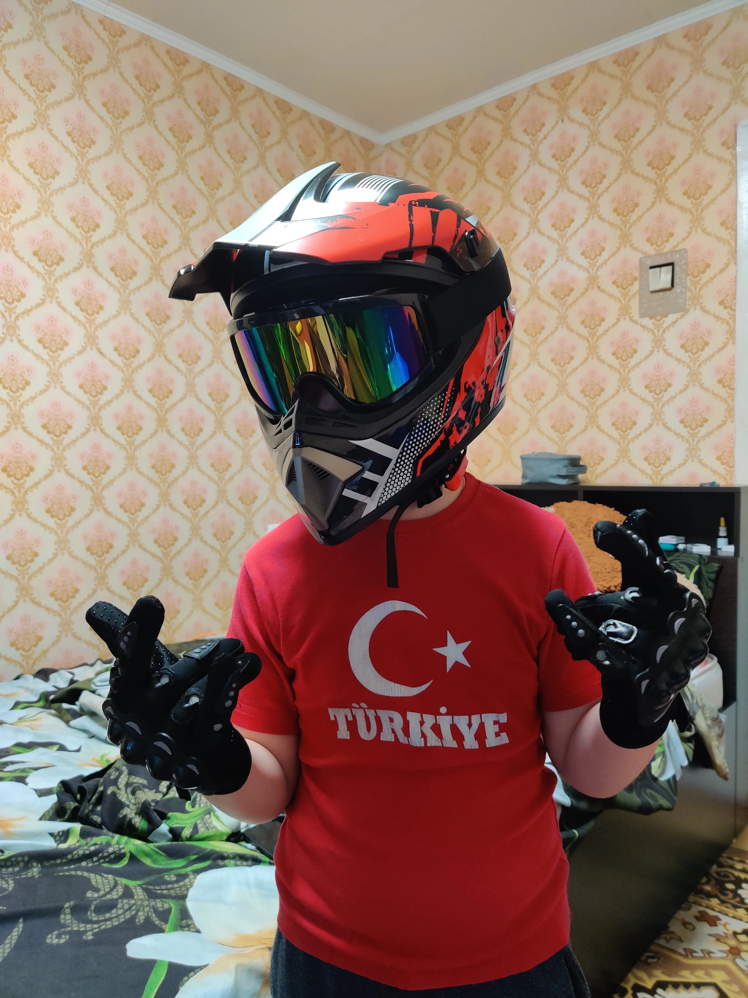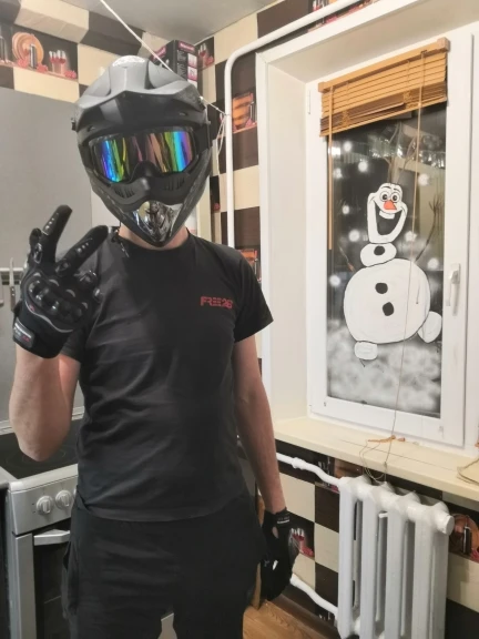Шлем хороший, подошёл по размеру. Очки понравились, но перчатки..... Сделаны ужасно нитки торчат, с дыркой, застежка и натирает запястье