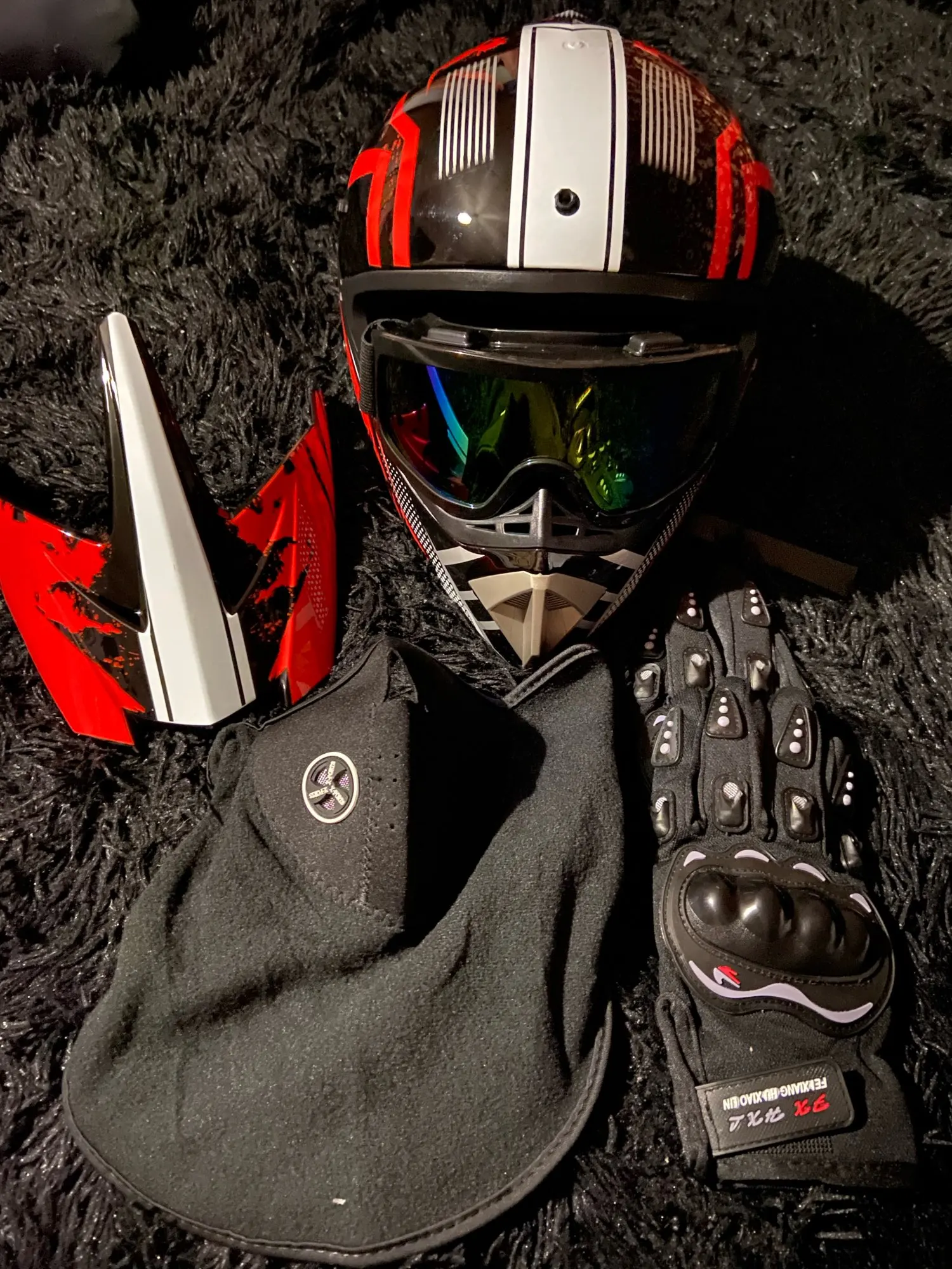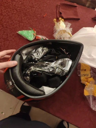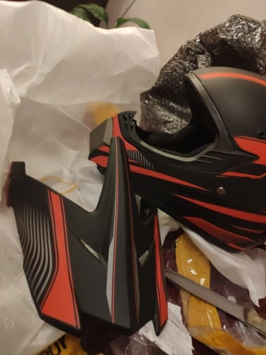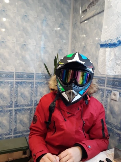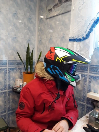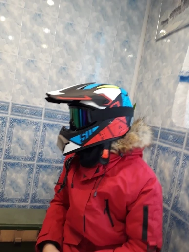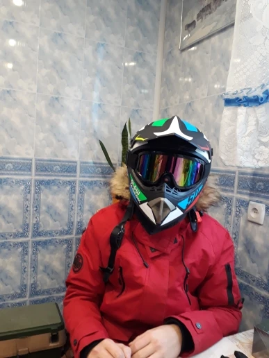 Товар был отправлен через 2 часа после заказа, дошёл до России быстро, и в бой пошла наша почта, которая видимо пешком доставляет(к продавцу притензий никаких). Запечатано аккуратно и в несколько слоев, посылка без повреждений.полная комплектность:шлем, козырёк, шурупы для крепления козырька, подушки в шлем, очки, перчатки, балоклава. Да пахнет пластиком, но не токсично, через пару катаний думаю уже не будет пахнуть, ожидал перчатки из более плотной ткани, совсем уж хлюпенькие ну и уплотнителтная резинка у очков конечно режет кожу(это даже не резинка а пластмасса), пожалуй единственное что могу сейчас выделить. Если учесть цену такого комплекта то ожидал худшего качества. По размерам все подошло ровно как надо, заказывал размер L, шлем сел идеально, но когда ремешок затянешь слишком тесно становится, но подушки чуть примнутся и будет все очень хорошо. 5 звёзд не иначе.