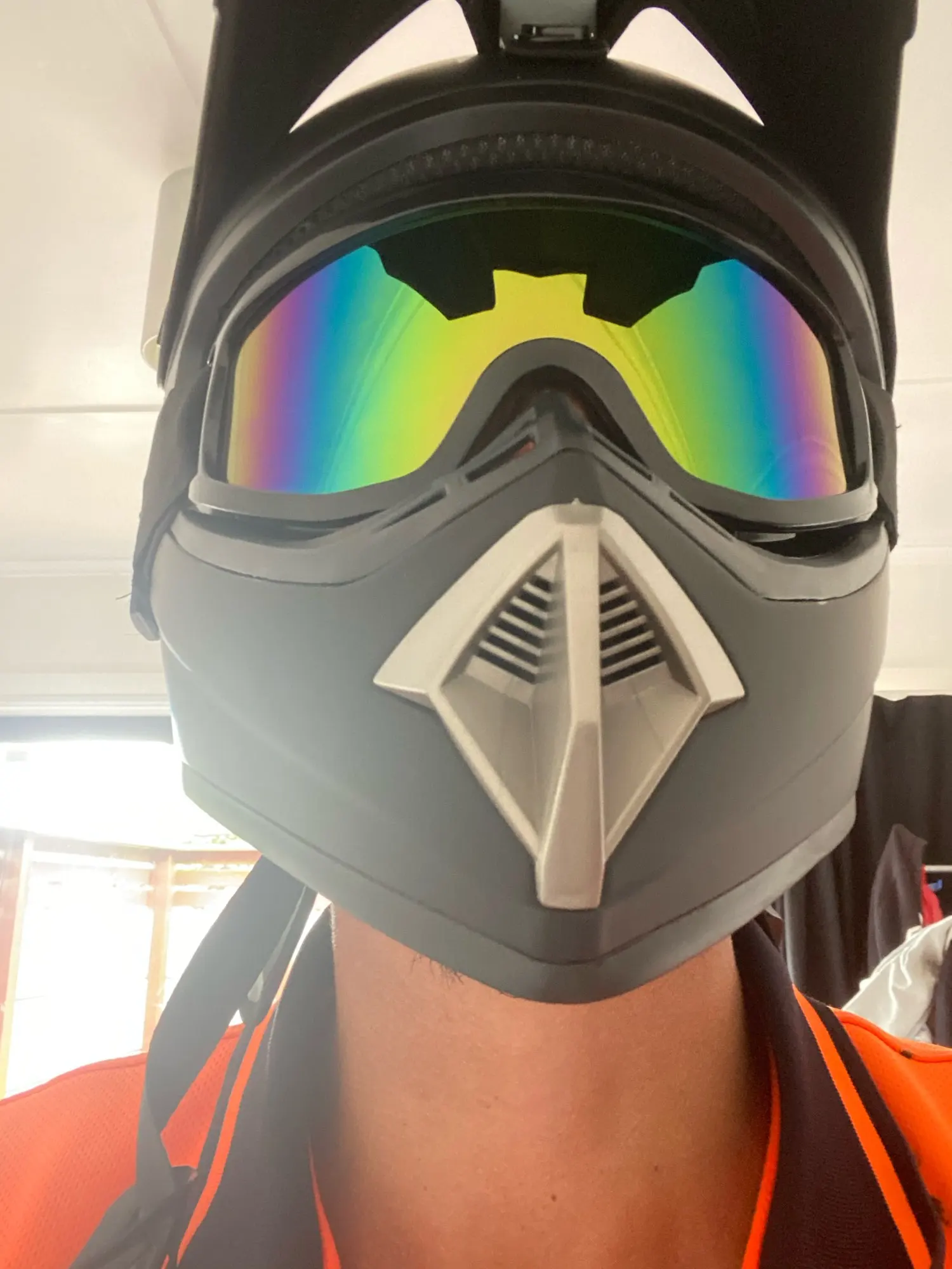 Доставка 2 недели. По размеру подошло. Все так как на фото. В комлекте очки, маска, перчатки. Пластик тонкий. За 2500 пойдет.