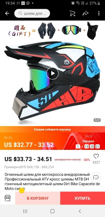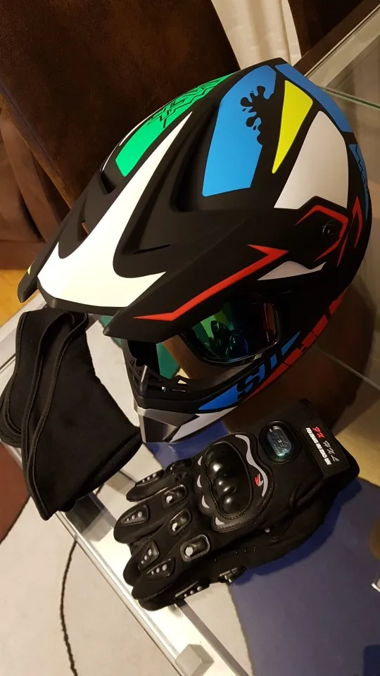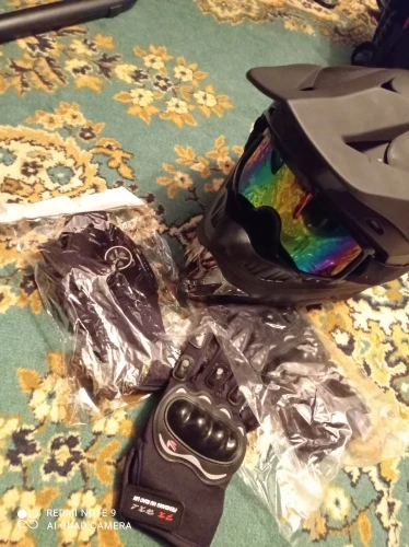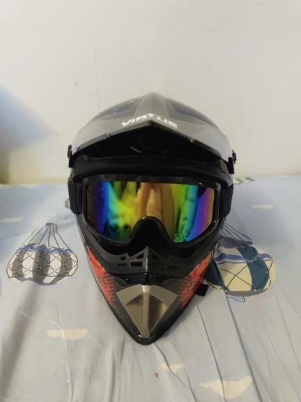 шлем просто огонь. Смотрится супер. Размер S на 56 подошёл отлично есть немного места. так что размерная сетка верная. На объём головы 58 тоже нашёл но тесновато.Очки норм, а перчатки г...- только как хозяйственные использовать. Продавец отправил быстро .Берите однозначно советую.