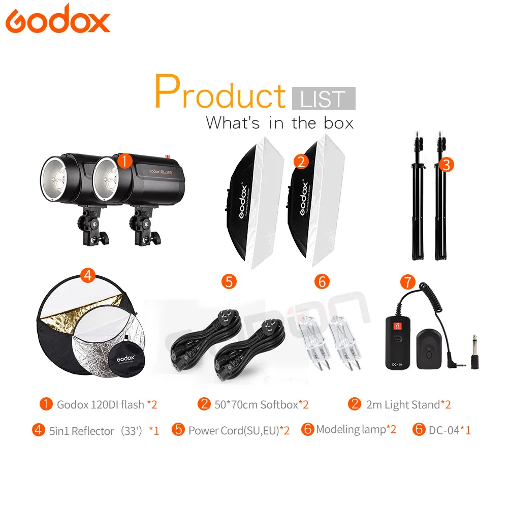 Студийный светильник GODOX fotografia 2X160Ws 160DI, стробоскопическая вспышка с триггером DC-04 вспышки с софтбоксом 160DI, комплект светодиодный Ной лампы