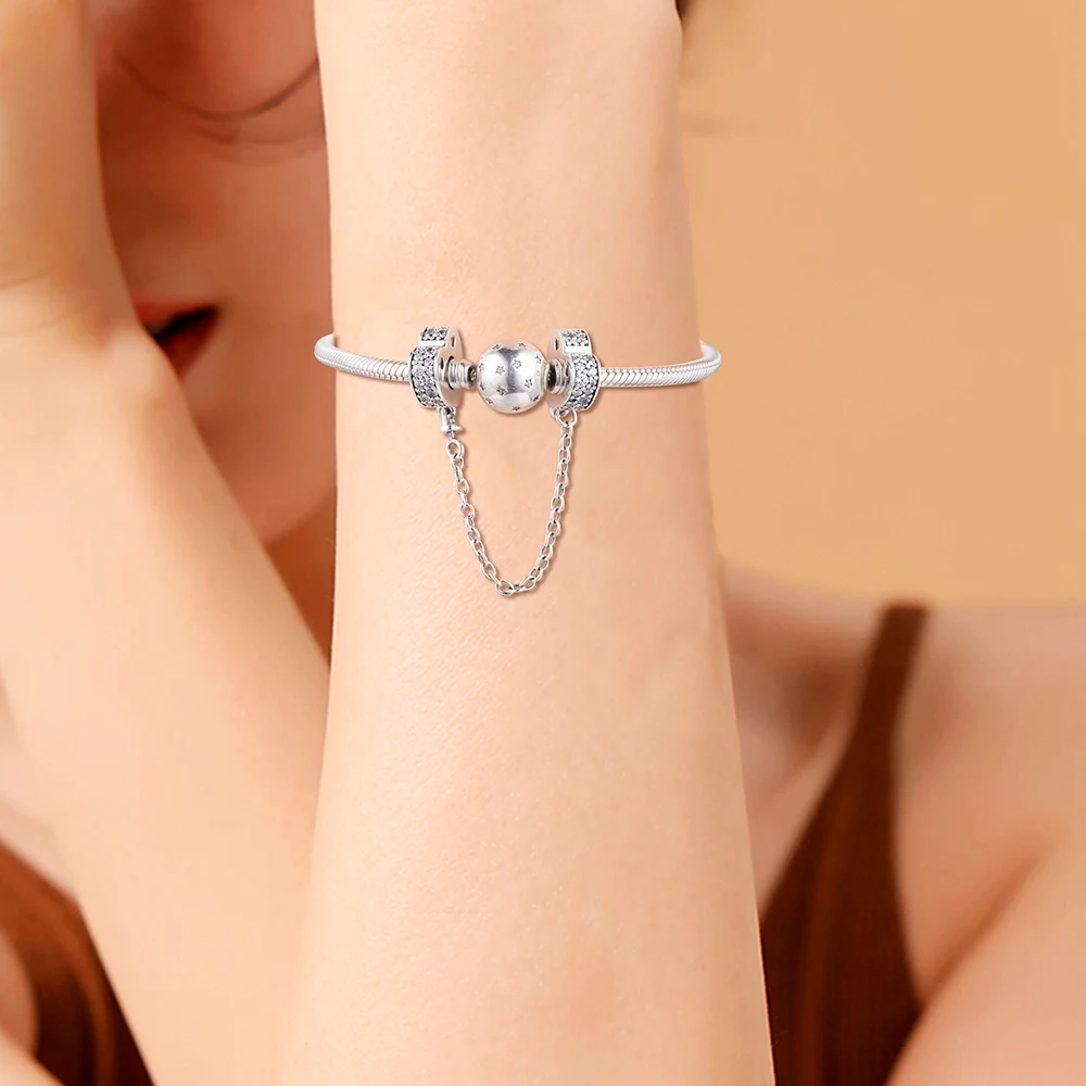 Подходит для браслетов Pandora Charms 100% 925 пробы-серебряные ювелирные изделия со сверкающими дугами Love безопасные бусины-цепочки с прозрачным кубическим цирконием
