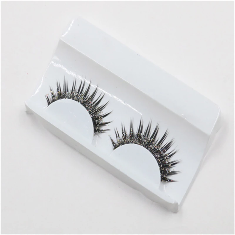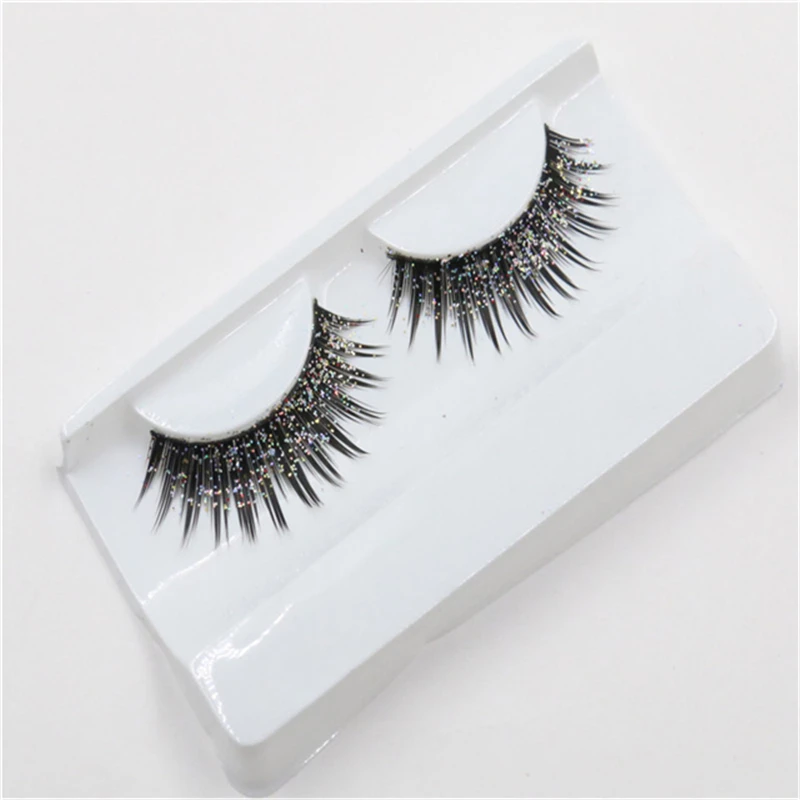1 пара, накладные ресницы с блестками, хлопковые нити, стебли, 3D, длинные, толстые, серебристые, блестящие, Преувеличенные, ресницы для ночного клуба, сцены, макияж для глаз
