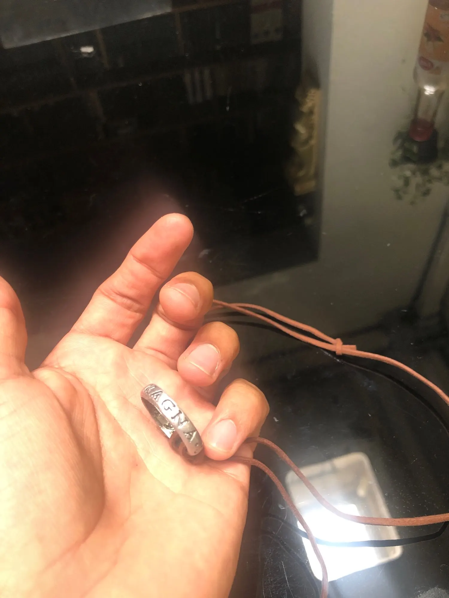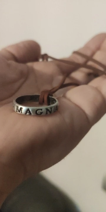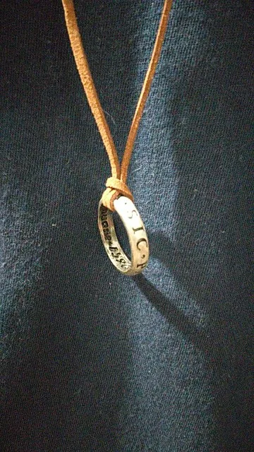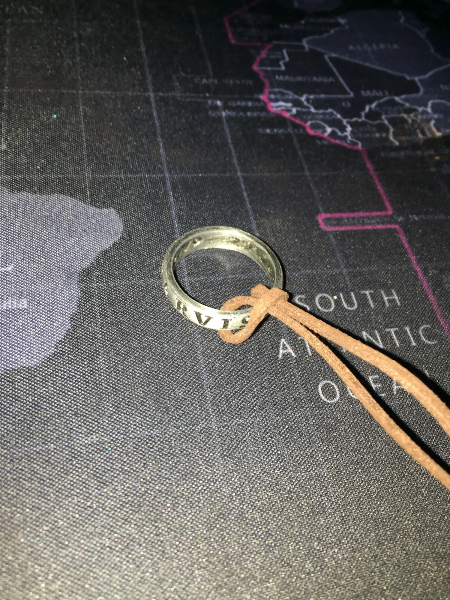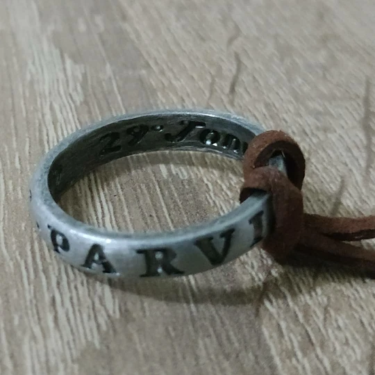 Кольцо выглядит хорошо, длина верёвки не позволяет носить его на шее, к тому же она, как мне кажется, будет натирать. Кольцо 2 сантиметра в диаметре. Товаром доволен. При первой отправке кольцо потеряли на почте, но продавец отправил повторно за 10 центов. Повторная доставка заняла примерно месяц.