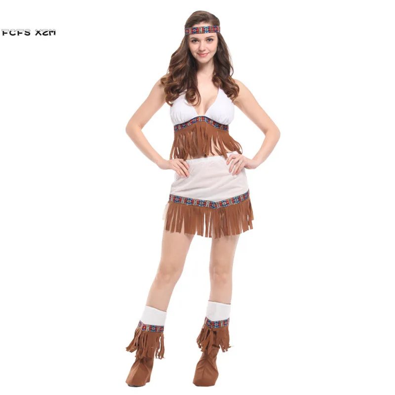 Женский костюм для Хэллоуина индейцев Покахонтас, Женский примитивный косплей, карнавал Пурим, Рождественский парад, платье для ночного клуба и вечевечерние в масках
