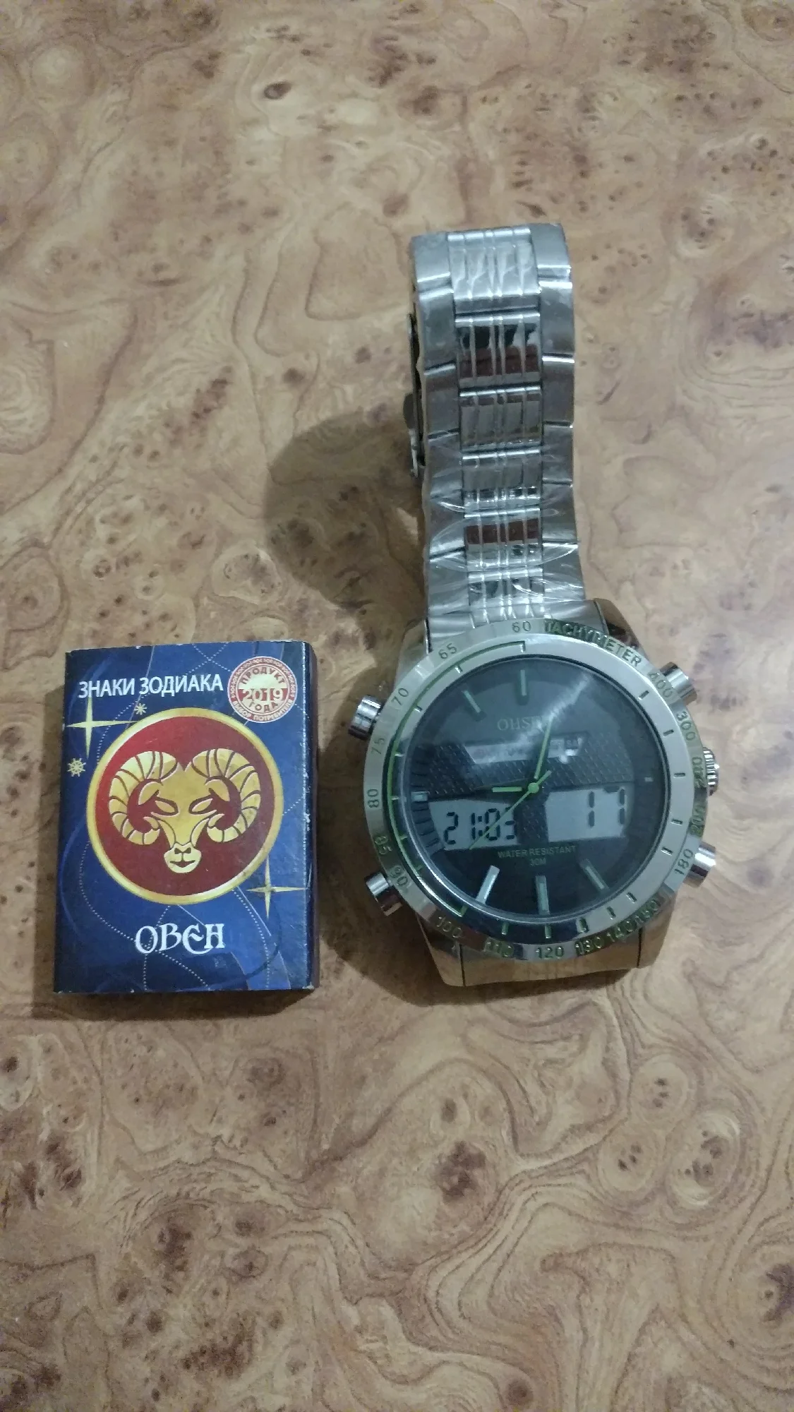 намного больше, чем смотрятся на фото у продавца. (я сделал фото совместно со стандартным коротком спичек) стрелки не имеют люминофорного покрытия и в сумерках читаются плохо, а в потёмках никак не видны. цифровое табло читается тоже не очень - маленькие цифры и часто закрыты стрелками. да, немного разочарован. ожидал лучшего. но и качество за такие деньги - ожидаемое. водонепроницаемость - не могу сказать, не погружал. до этого были weide h905 - очень доволен был.