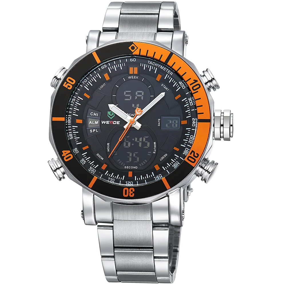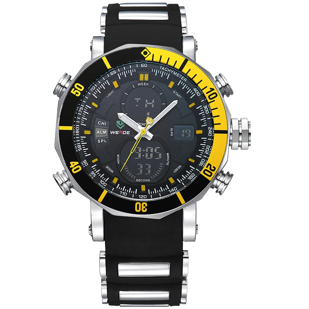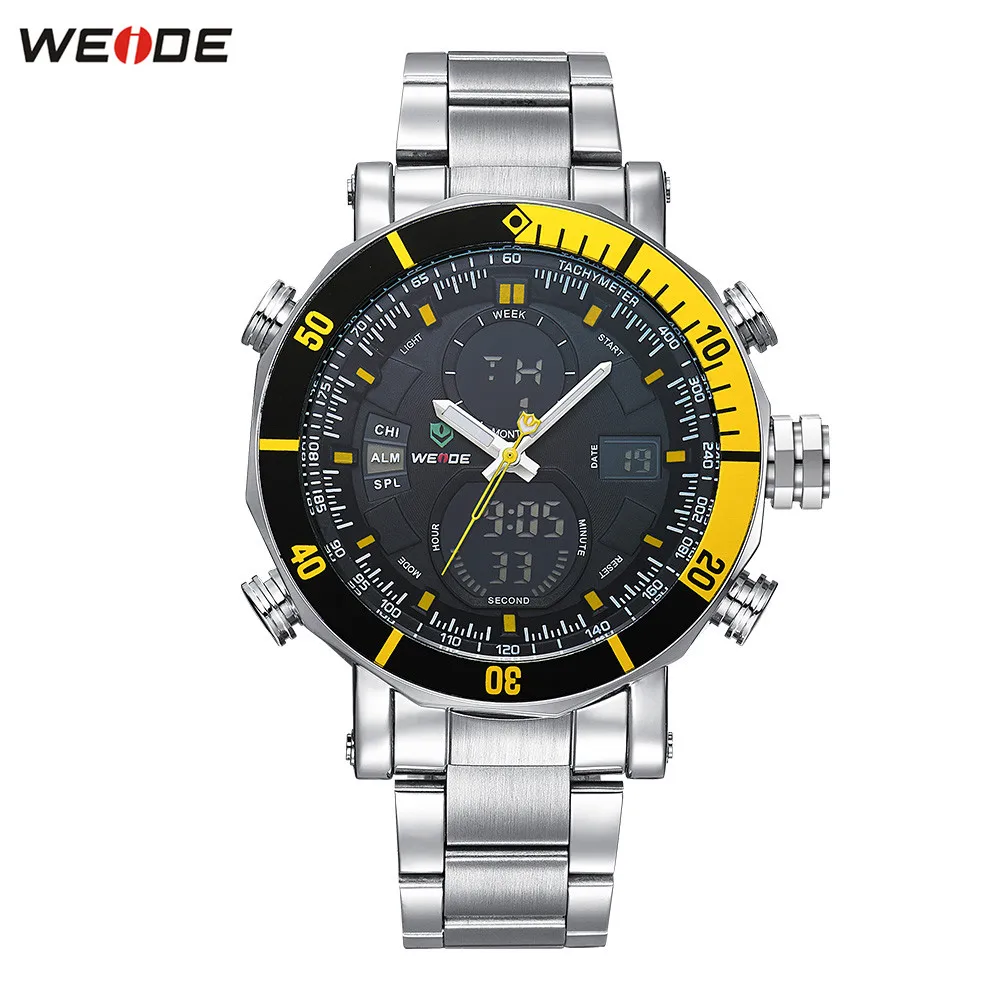 Оригинальные брендовые водонепроницаемые спортивные мужские Цифровые кварцевые часы WEIDE, светодиодные Желтые часы со стальным ремешком, военные наручные часы Relogios