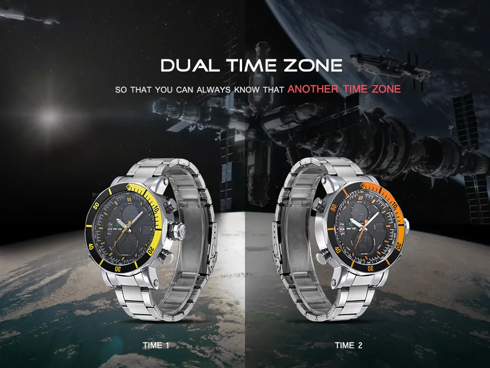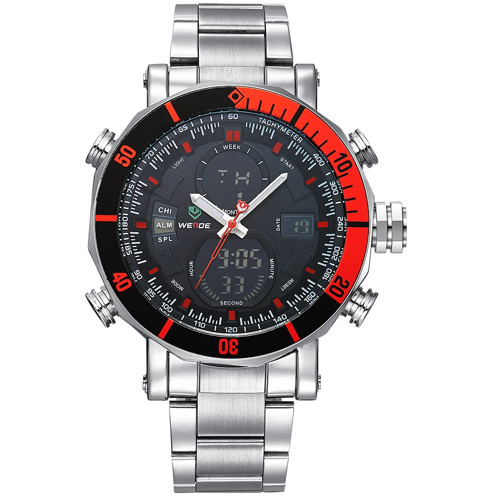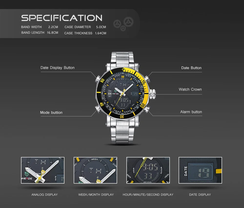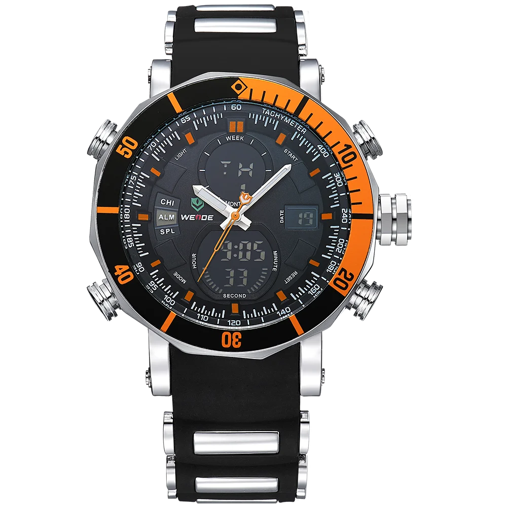 Оригинальные брендовые водонепроницаемые спортивные мужские Цифровые кварцевые часы WEIDE, светодиодные Желтые часы со стальным ремешком, военные наручные часы Relogios