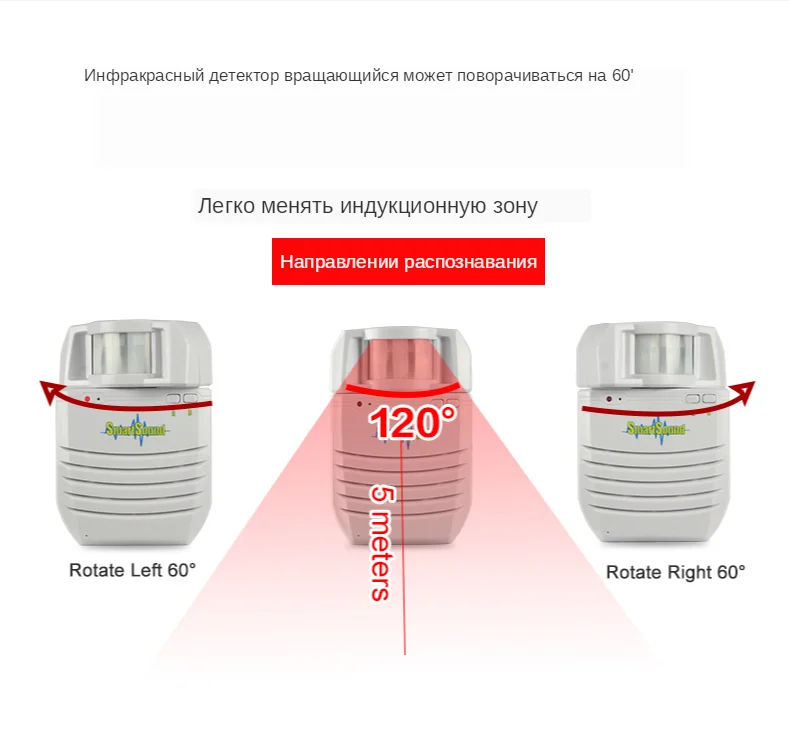 Инфракрасный детектор может вращаться на 60 ° С левой и правой сторон, легко регулировать Область обнаружения.