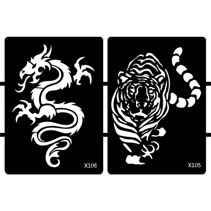 Xmasir 10 листов большой Аэрограф Для блесток трафарет тату для мужчин, Волк тигр дракон шаблоны для задней руки тела живопись 13x19 см