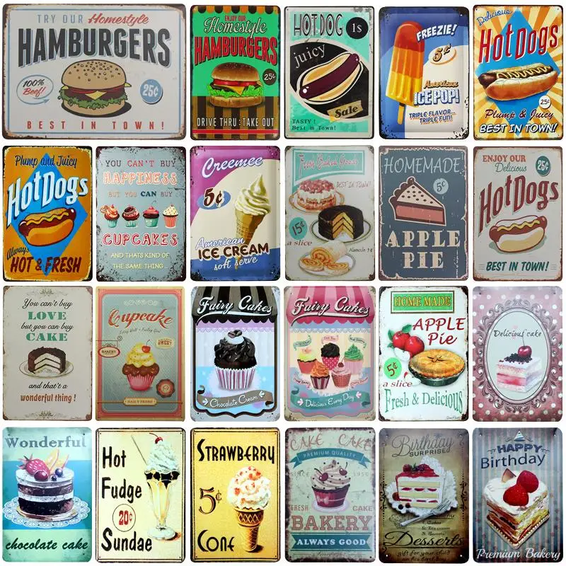 SQ-DGLZ хот-догмороженоеТортгамбургер, металлическая табличка, Настенный декор, Жестяная Табличка, винтажный Декор для дома, таблички, художественный плакат