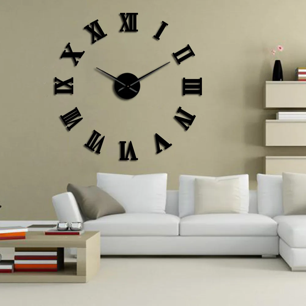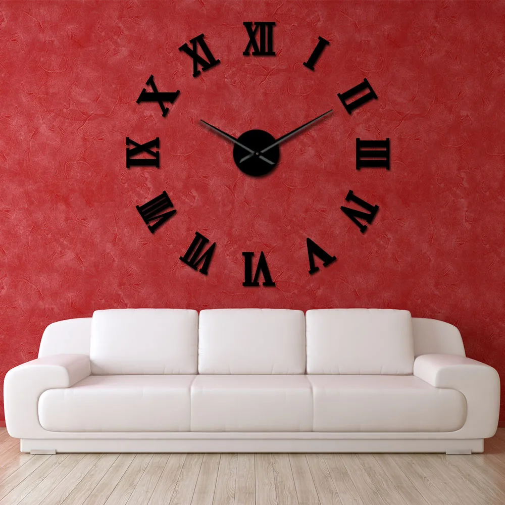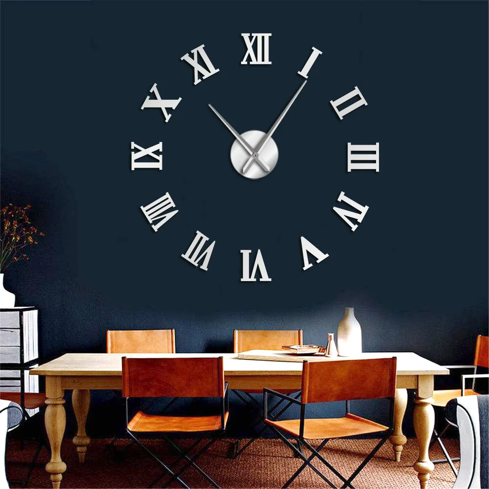Современные большие настенные часы DIY, 3D зеркальная поверхность, наклейка, домашний декор, искусство, гигантские настенные часы с римскими цифрами, большие часы