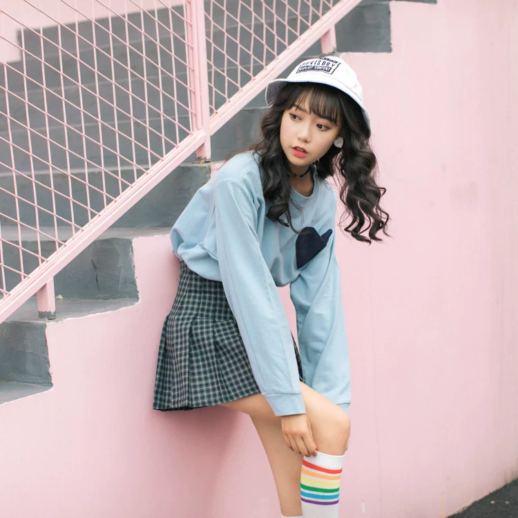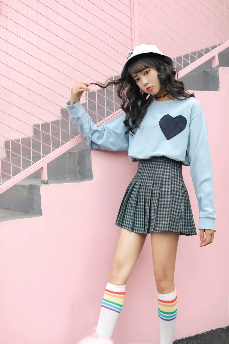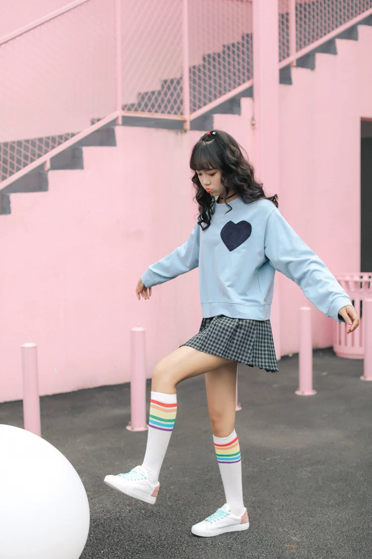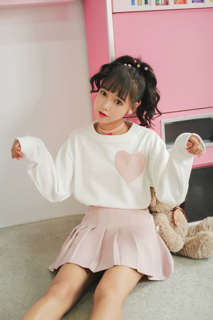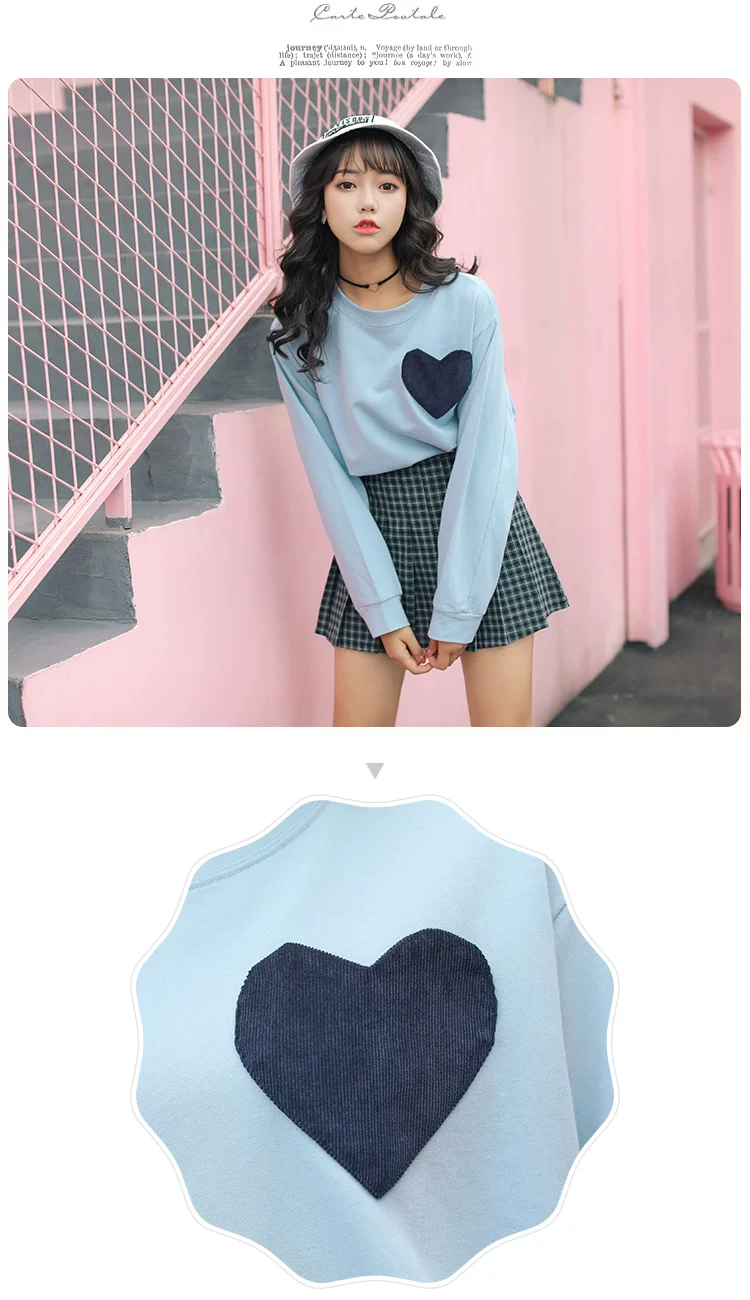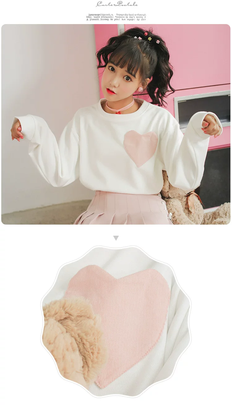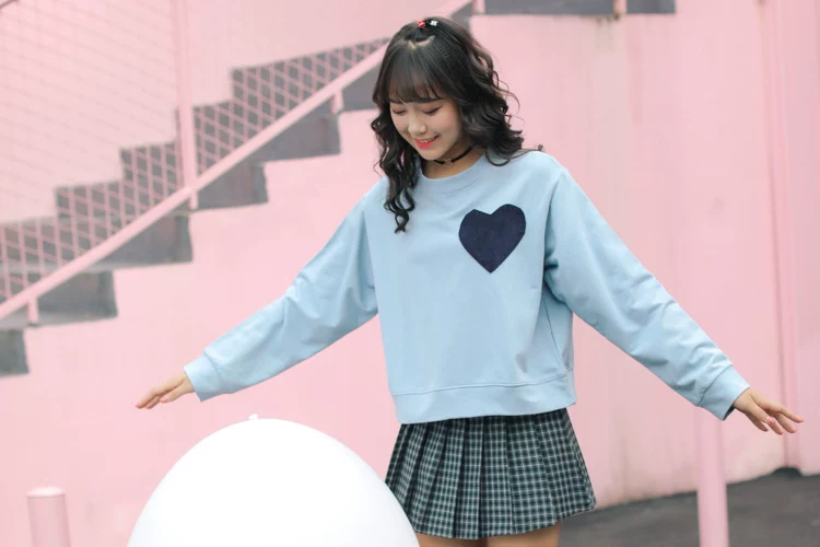 Женская толстовка в японском стиле Harajuku Ulzzang, толстая свободная бархатная Толстовка с вышивкой в виде сердца в стиле ретро, каваи, 2020