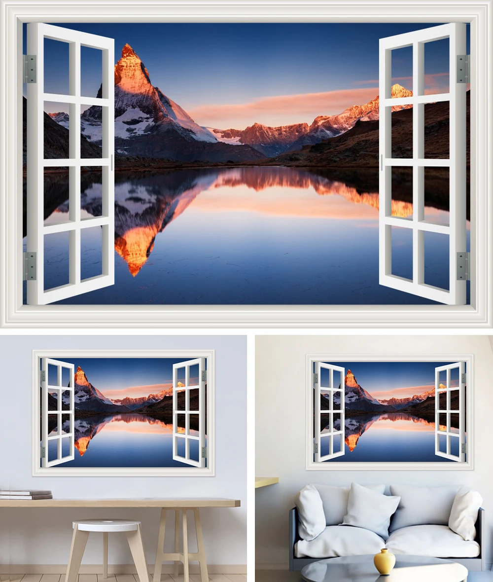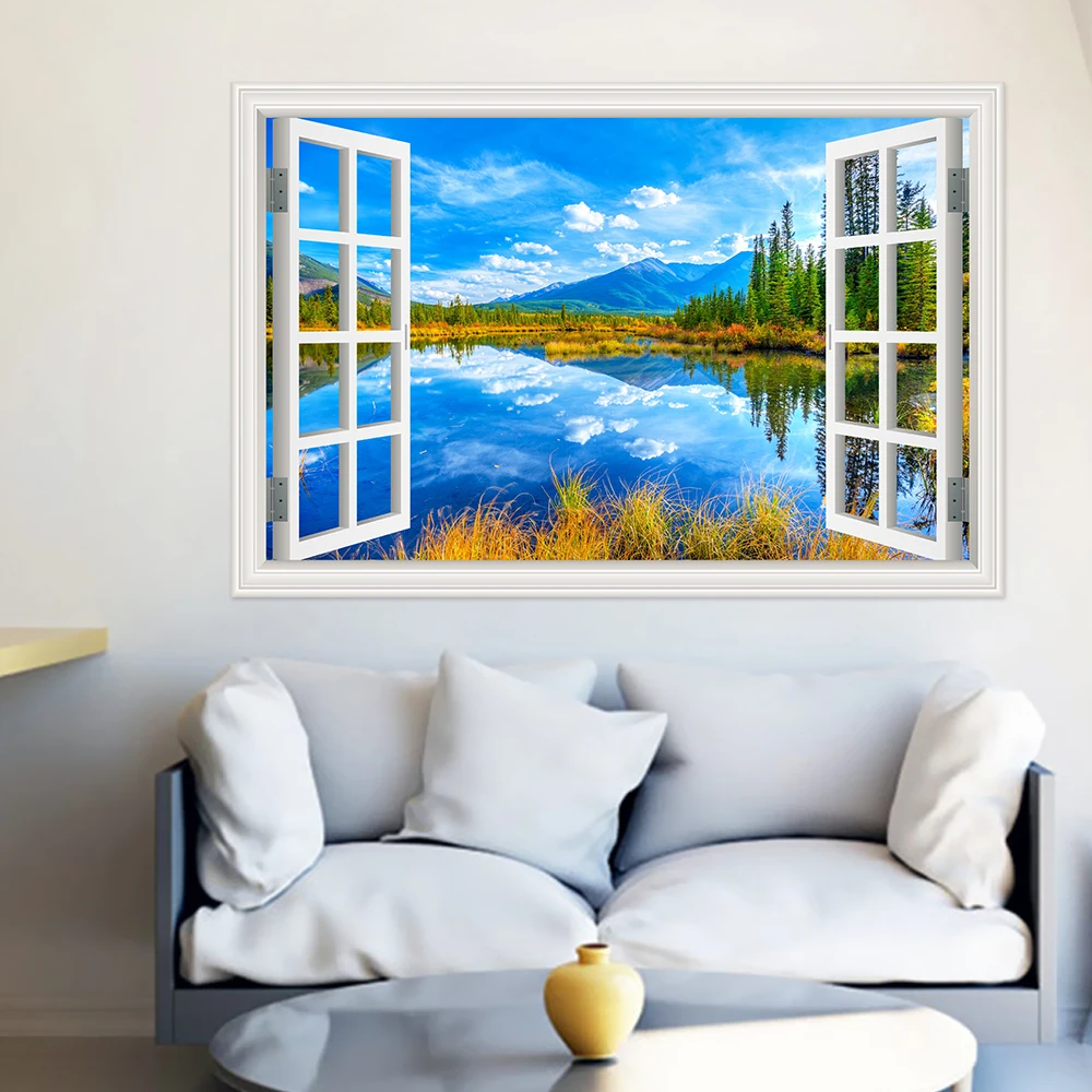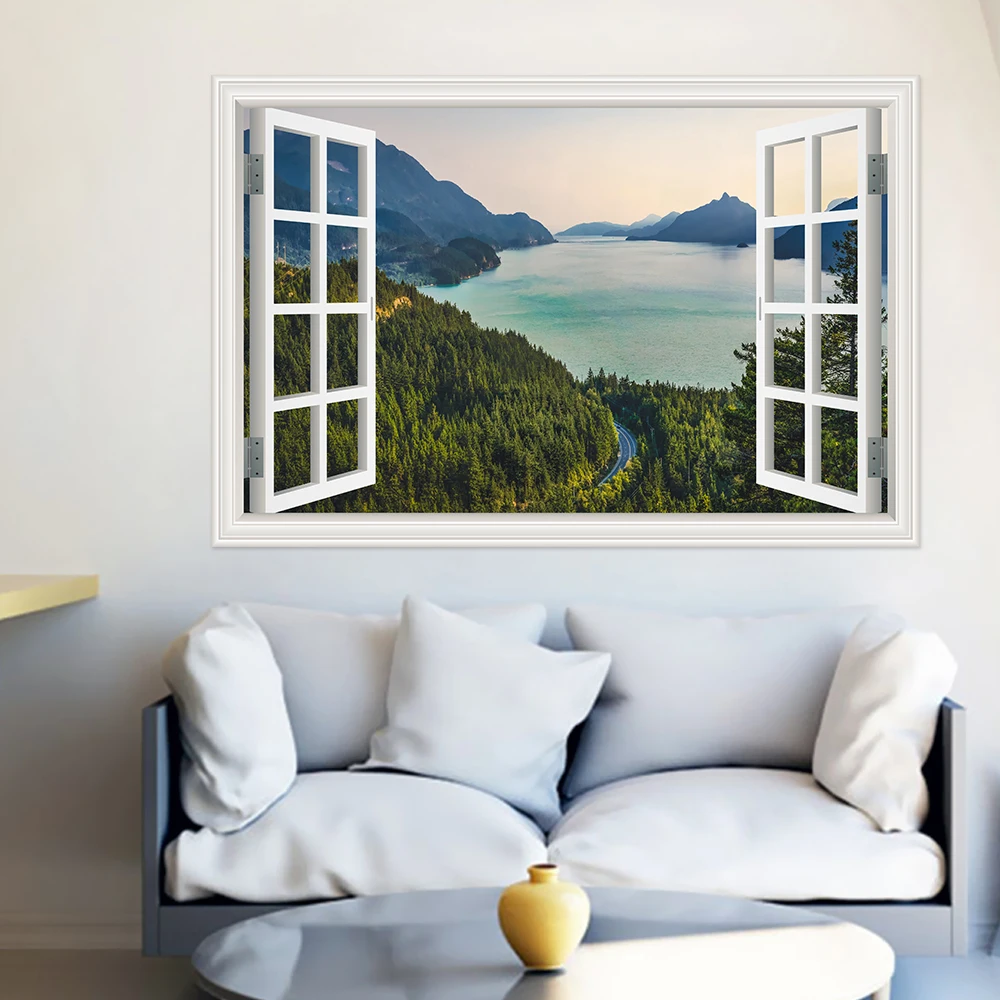 Современная 3D большая наклейка фотообои снег горное озеро природа окно рамка виниловый домашний Декор Гостиная Спальня