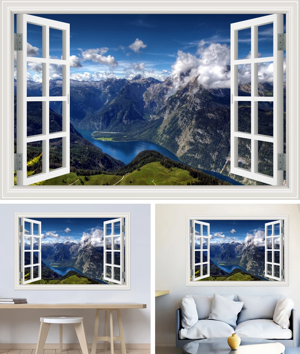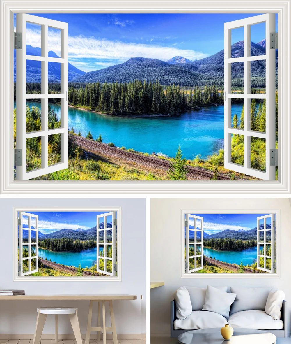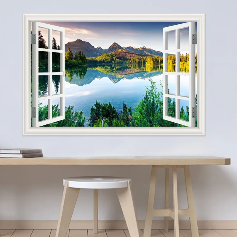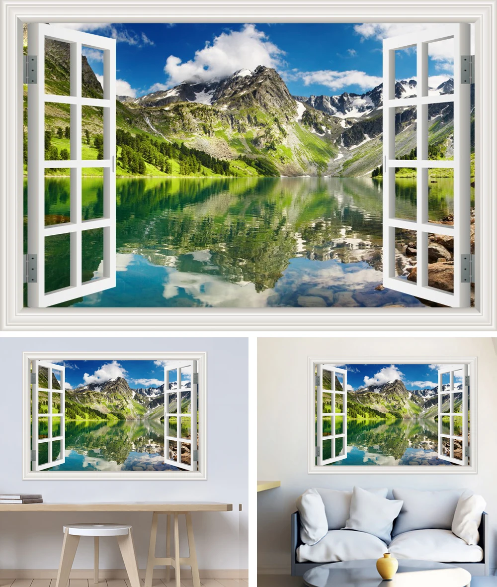 Современная 3D большая наклейка фотообои снег горное озеро природа окно рамка виниловый домашний Декор Гостиная Спальня