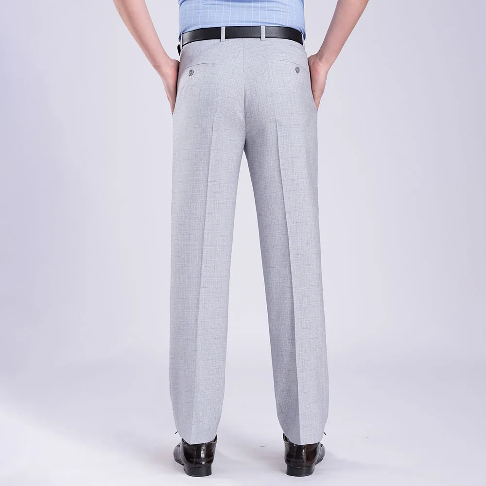 Брюки мужские формальные деловые мешковатые, эластичные офисные тонкие шелковые длинные Костюмные брюки, рабочие штаны для мужчин, большие размеры 29-44, лето
