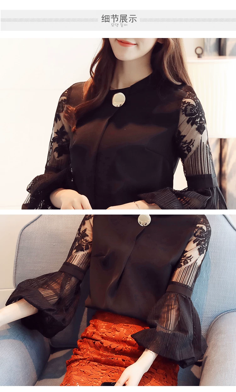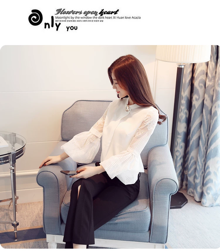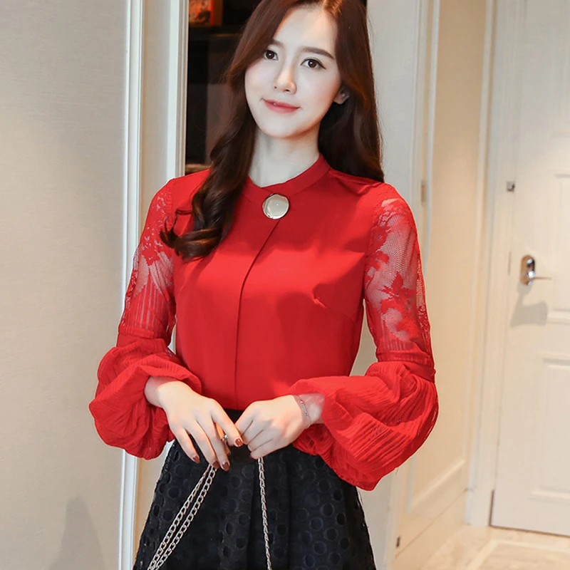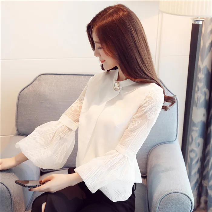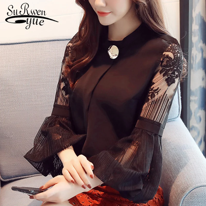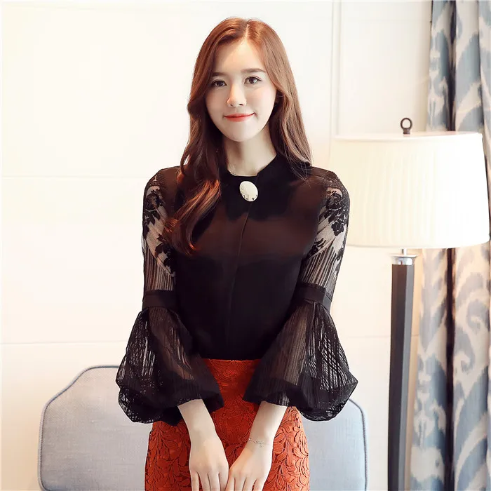 Модная шифоновая женская одежда 2021, Черная Женская блузка с длинным рукавом-фонариком, рубашка, милые женские топы с воротником-стойкой, блузы D79 30