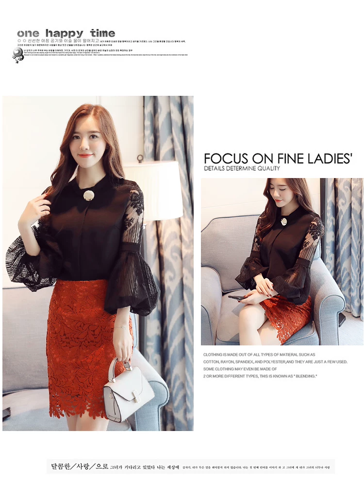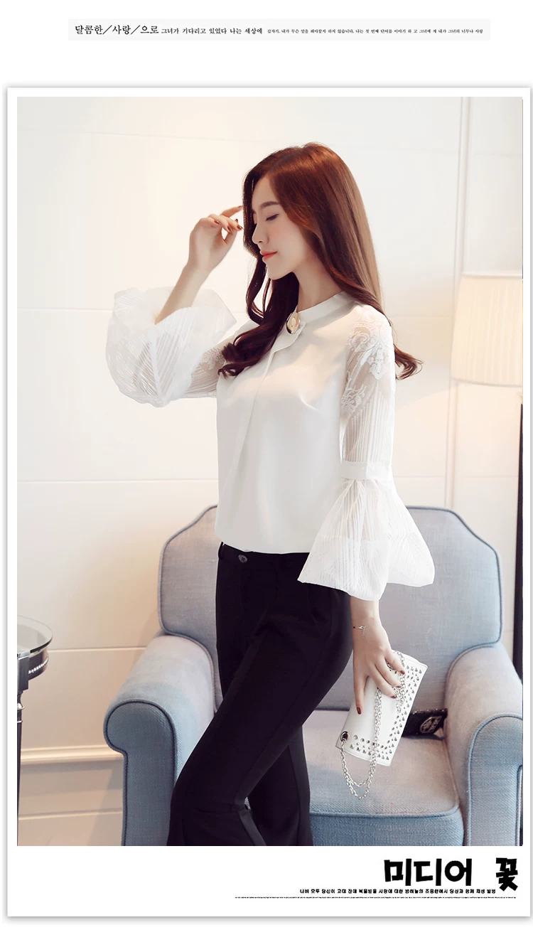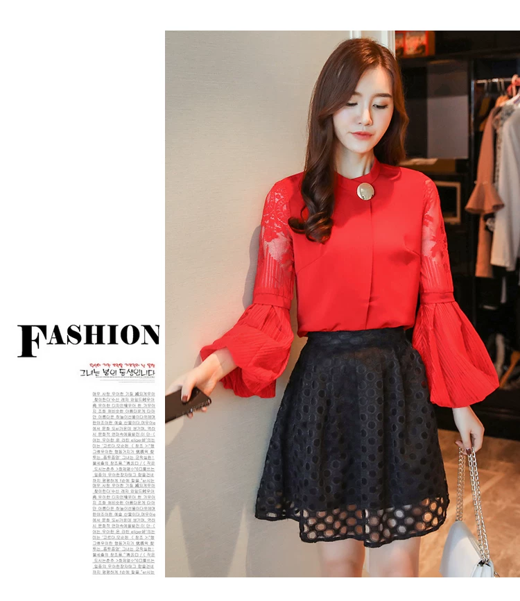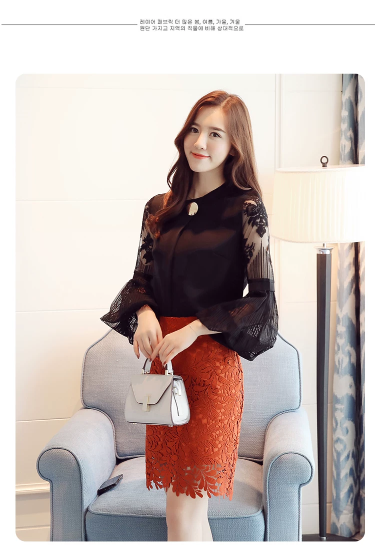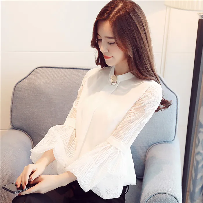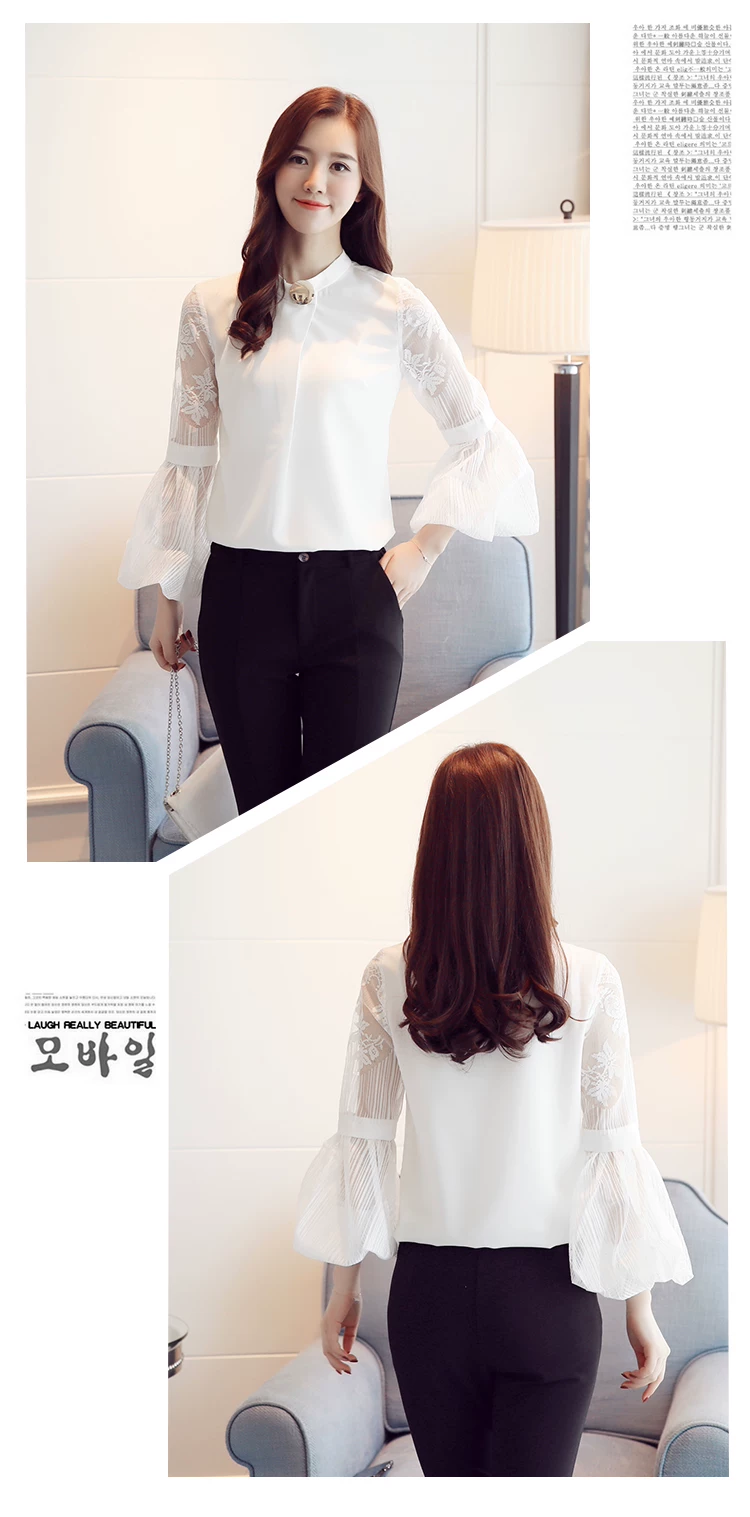 Модная шифоновая женская одежда 2021, Черная Женская блузка с длинным рукавом-фонариком, рубашка, милые женские топы с воротником-стойкой, блузы D79 30