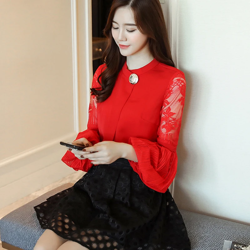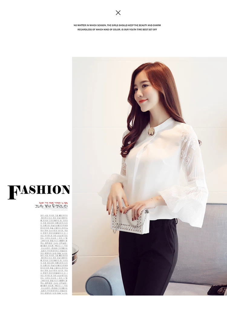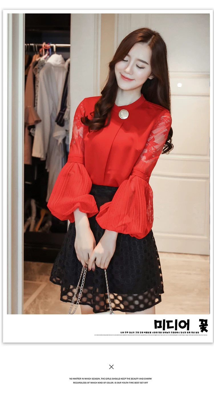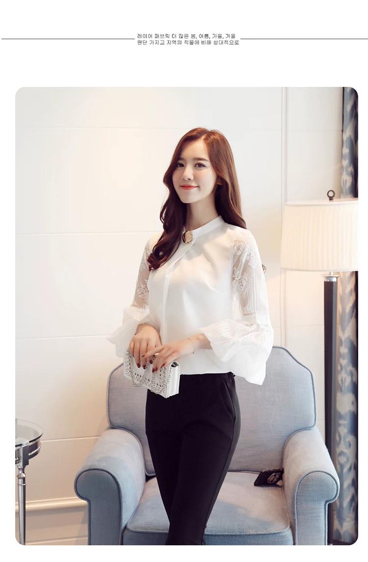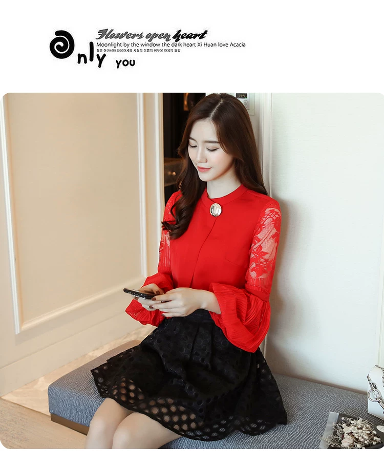 Модная шифоновая женская одежда 2021, Черная Женская блузка с длинным рукавом-фонариком, рубашка, милые женские топы с воротником-стойкой, блузы D79 30