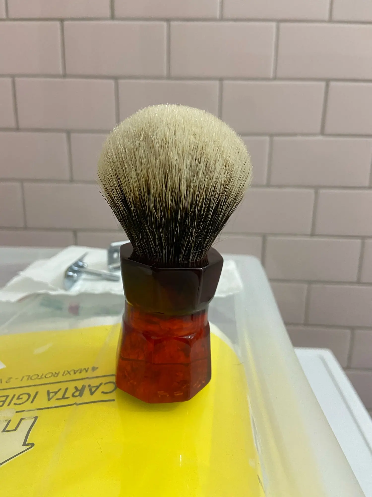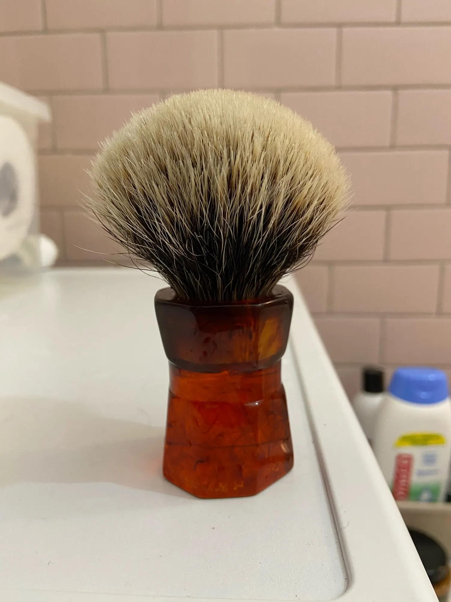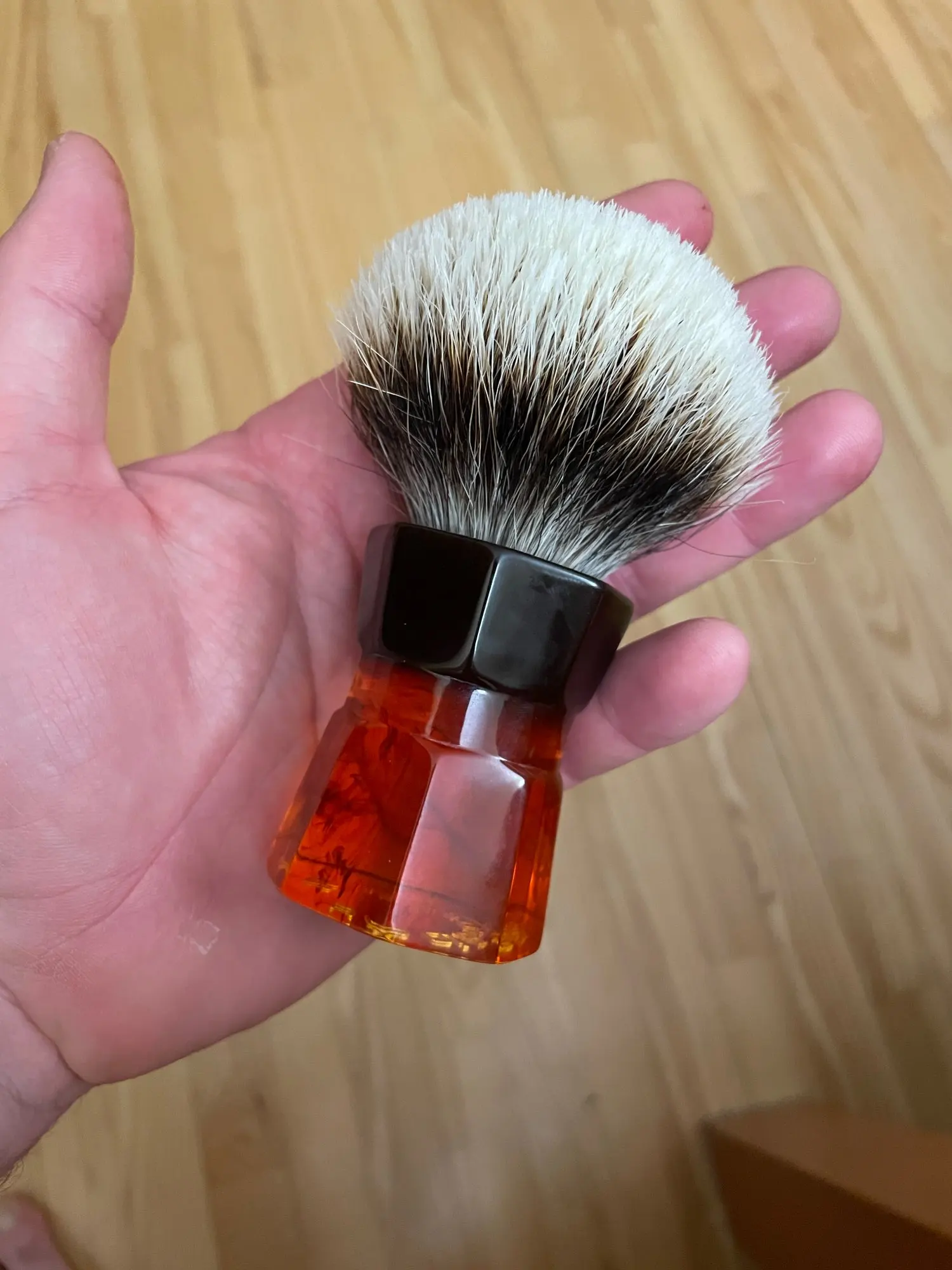 Огромная щетка для бритья барсука. Хорошие качество и дизайн. На фотографиях он выглядит меньше, чем на самом деле. Но это хорошая покупка за те деньги, которые стоят.