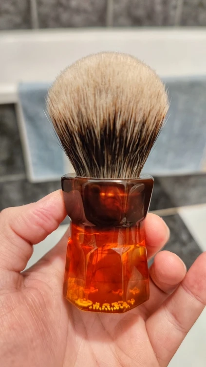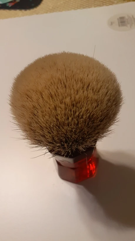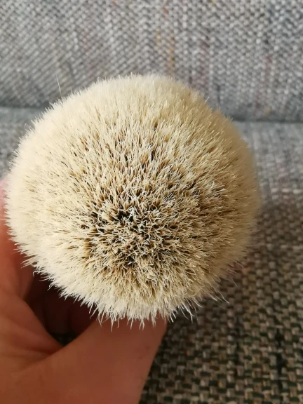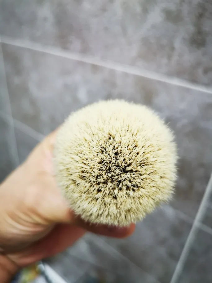 Помазок супер! Средняя жесткость, ближе в мягкую сторону. Хорошая плотность набивки. много набырает мыла, после также много отдает. Отлично взбивает пену.